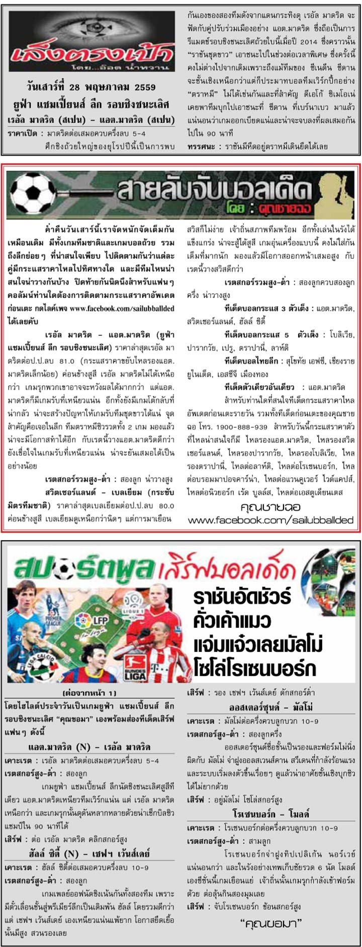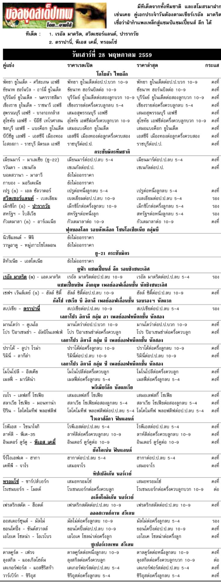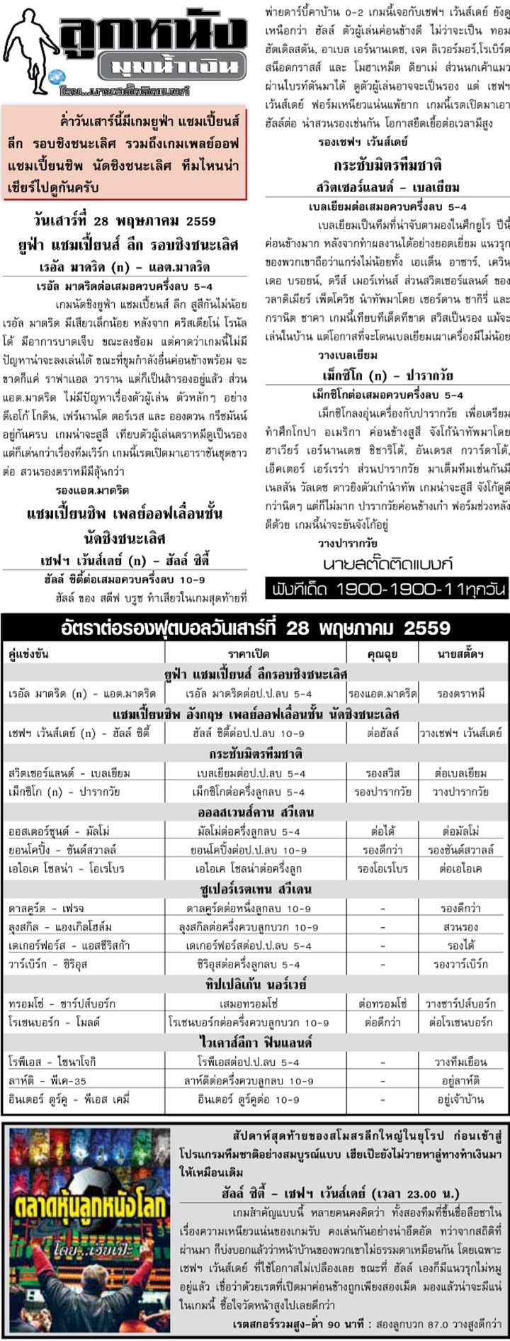RE : สปอร์ตพูล ฉบับวันที่ 29 พ.ค. 2559