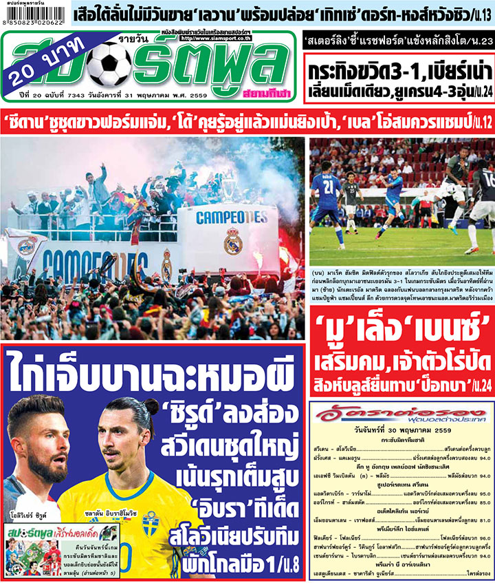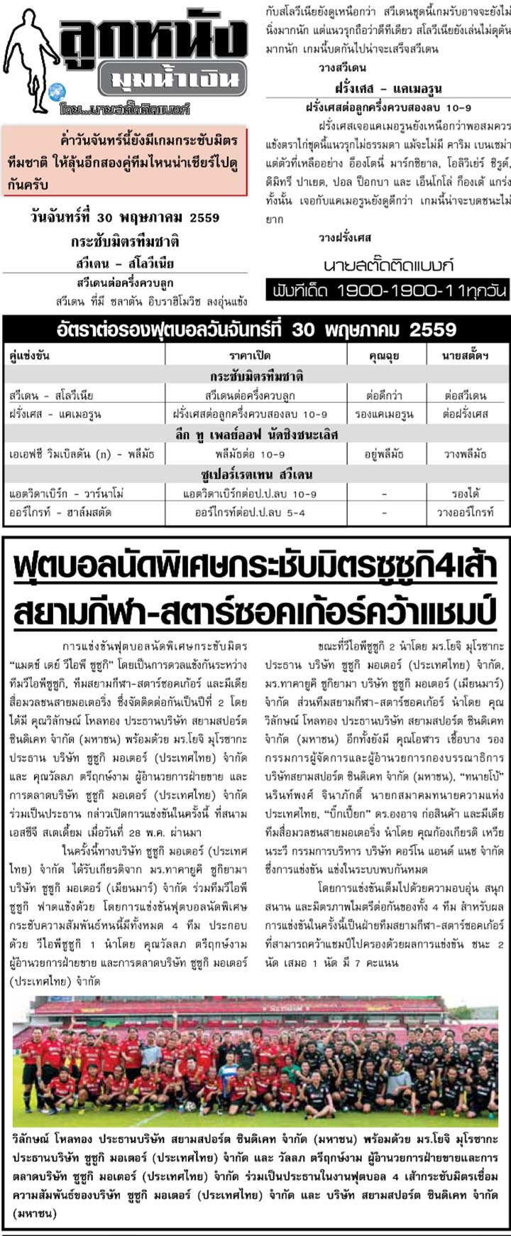 RE : สปอร์ตพูล ฉบับวันที่ 31 พ.ค. 2559