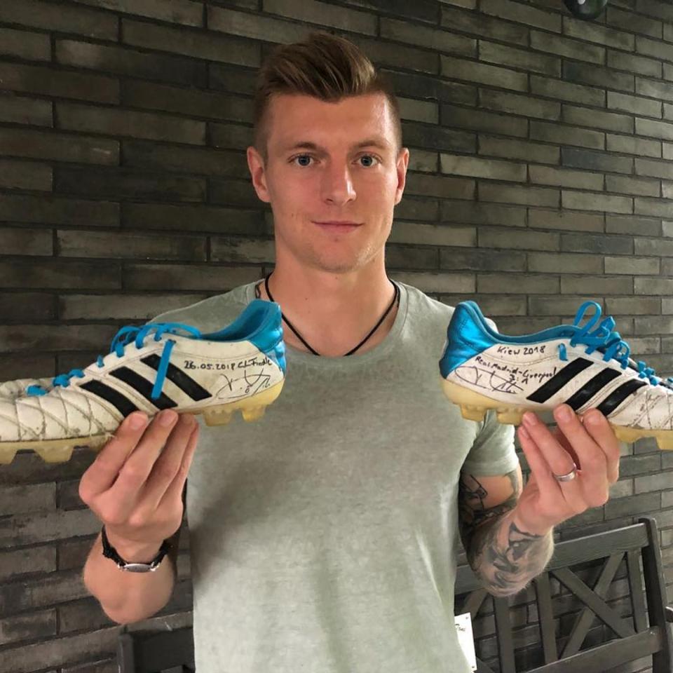 โทนี่ โครส จากทีมราชันชุดขาวออกมาประมูล รองเท้าสตั๊ดราคาถูก และเสื้อแข่งที่ทำศึกแชมเปี้ยนส์ลีกที่เอาชนะลิเวอร์พูลไปได้ 3-1 เพื่อสมทบทุนในมูลนิธิของเจ้าตัว