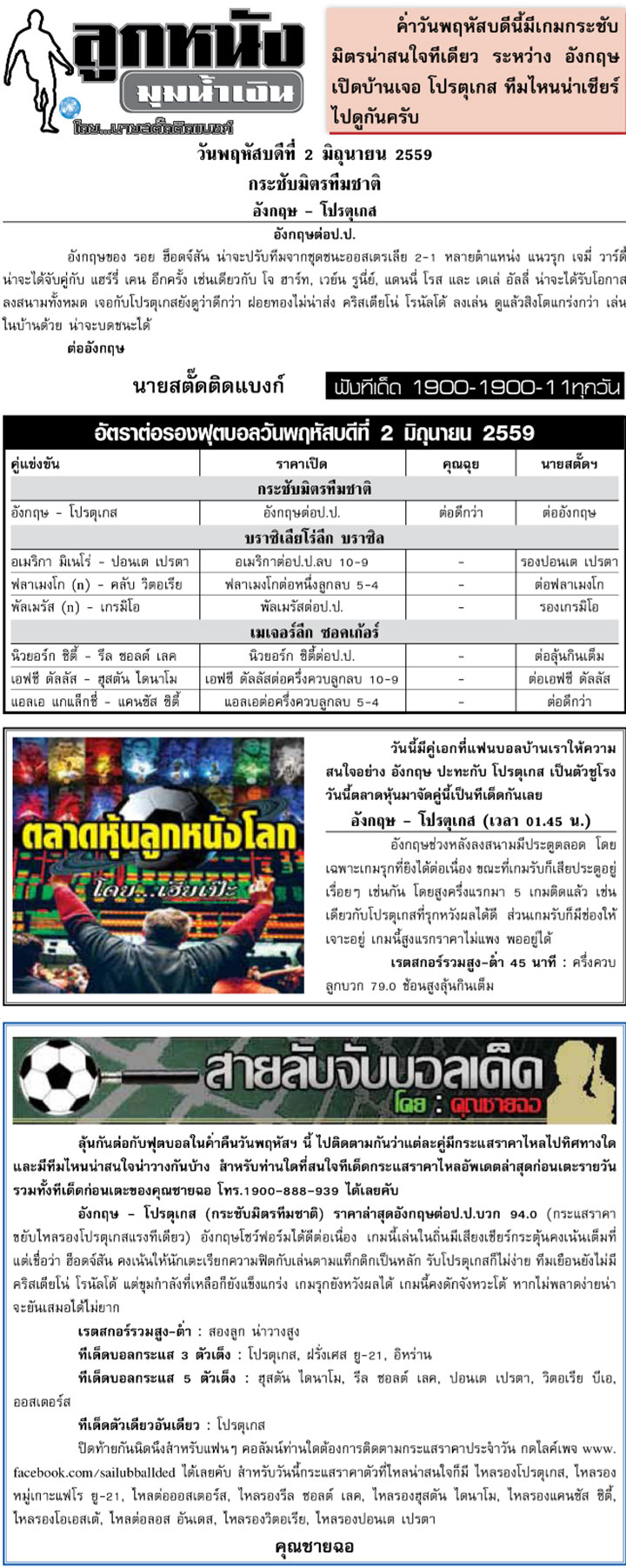 RE : สปอร์ตพูล ฉบับวันที่ 3 มิ.ย. 2559