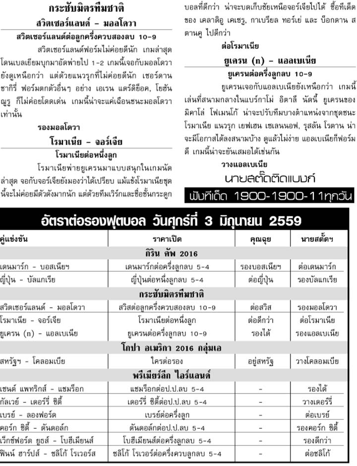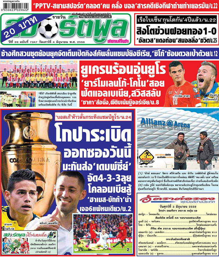 RE : สปอร์ตพูล ฉบับวันที่ 4 มิ.ย. 2559