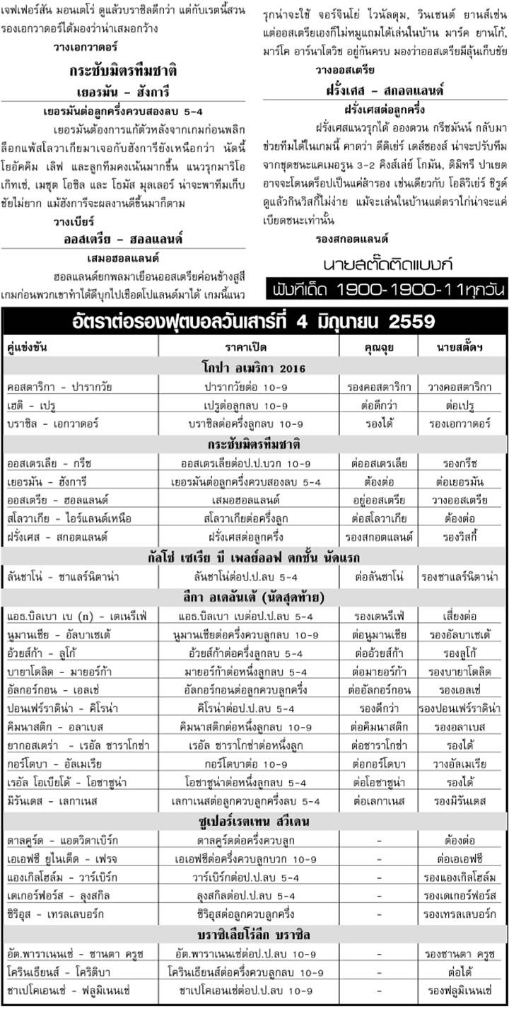 RE : สปอร์ตพูล ฉบับวันที่ 5 มิ.ย. 2559