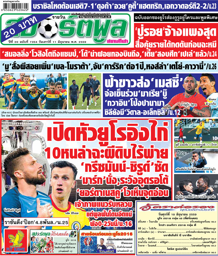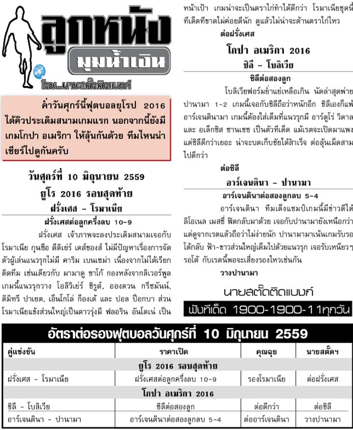 RE : สปอร์ตพูล ฉบับวันที่ 11 มิ.ย. 2559