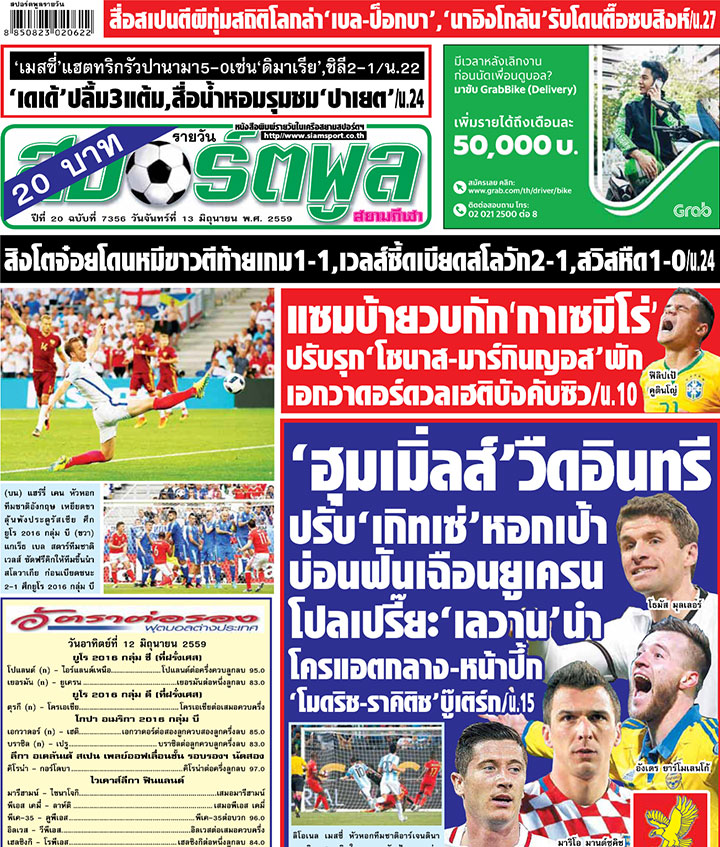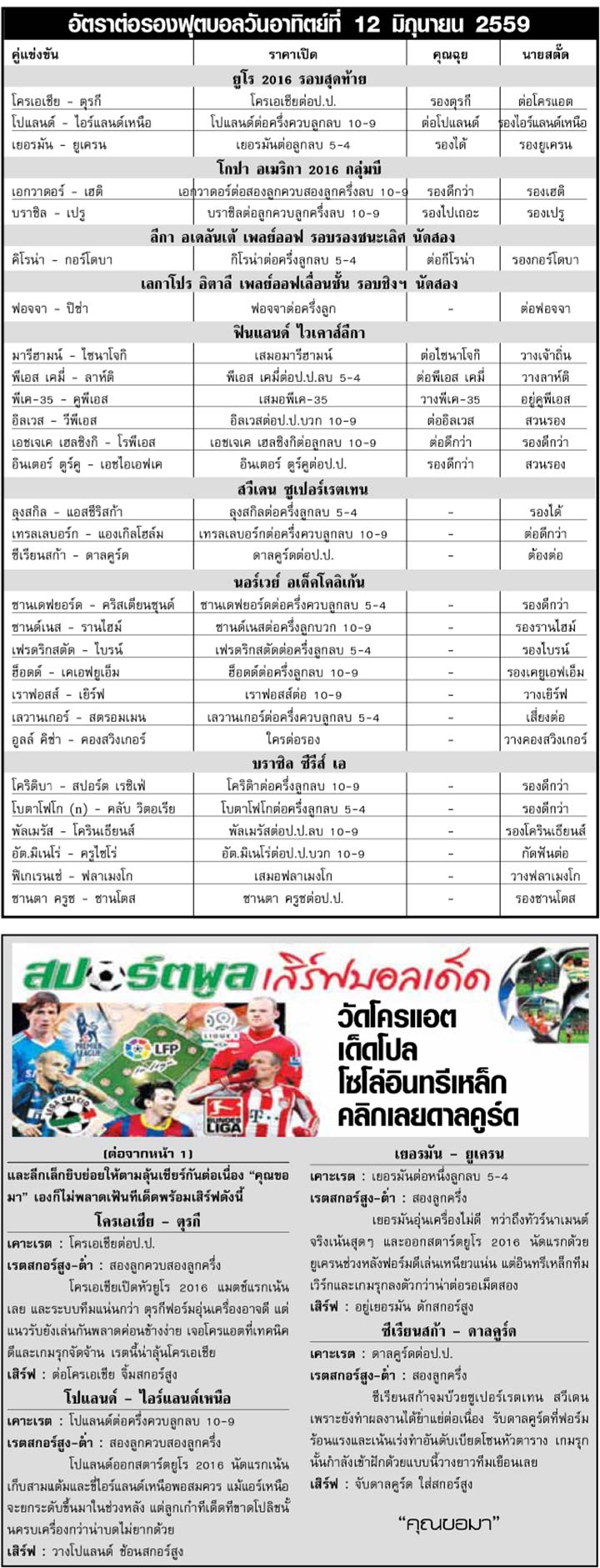 RE : สปอร์ตพูล ฉบับวันที่ 13 มิ.ย. 2559