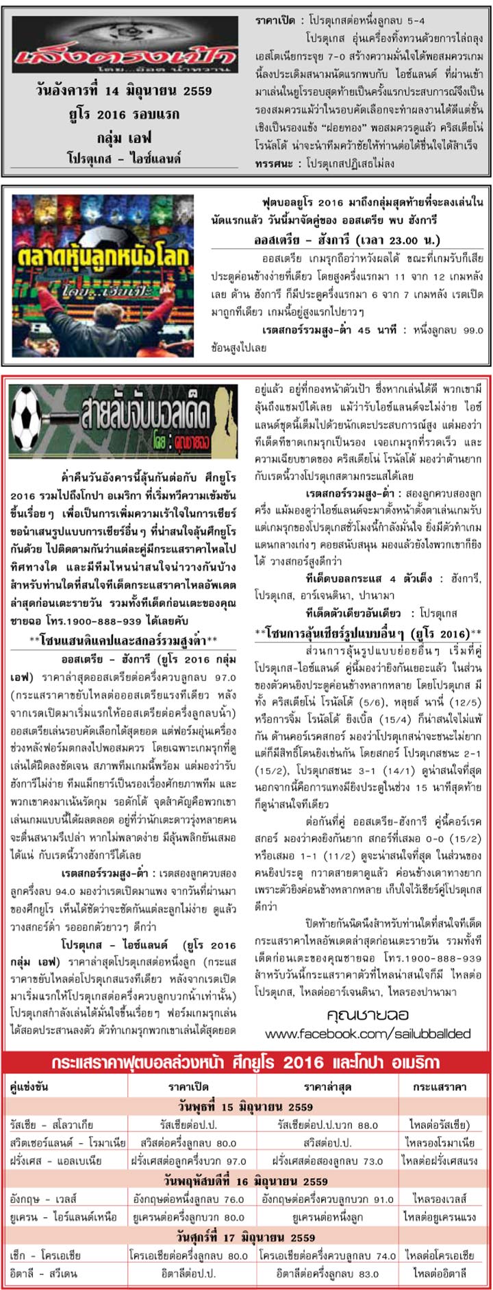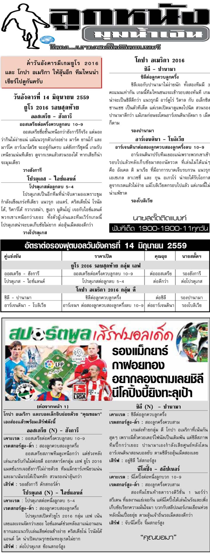 RE : สปอร์ตพูล ฉบับวันที่ 15 มิ.ย. 2559
