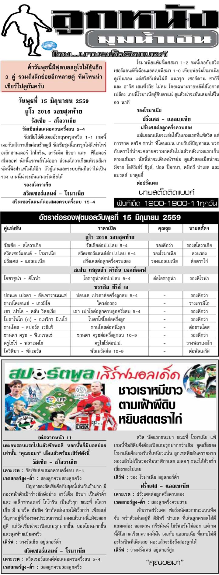 RE : สปอร์ตพูล ฉบับวันที่ 16 มิ.ย. 2559