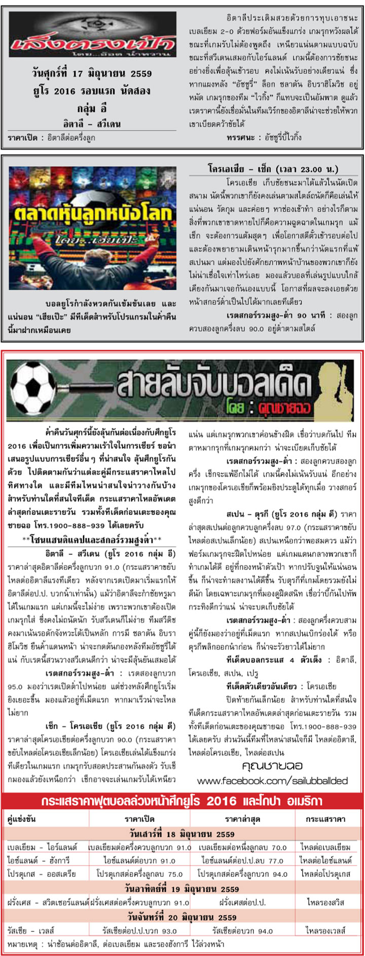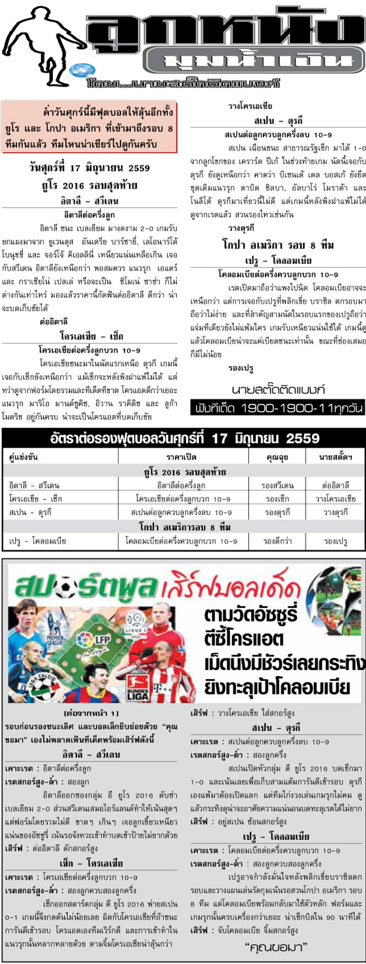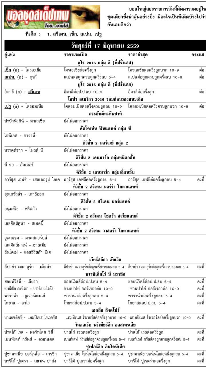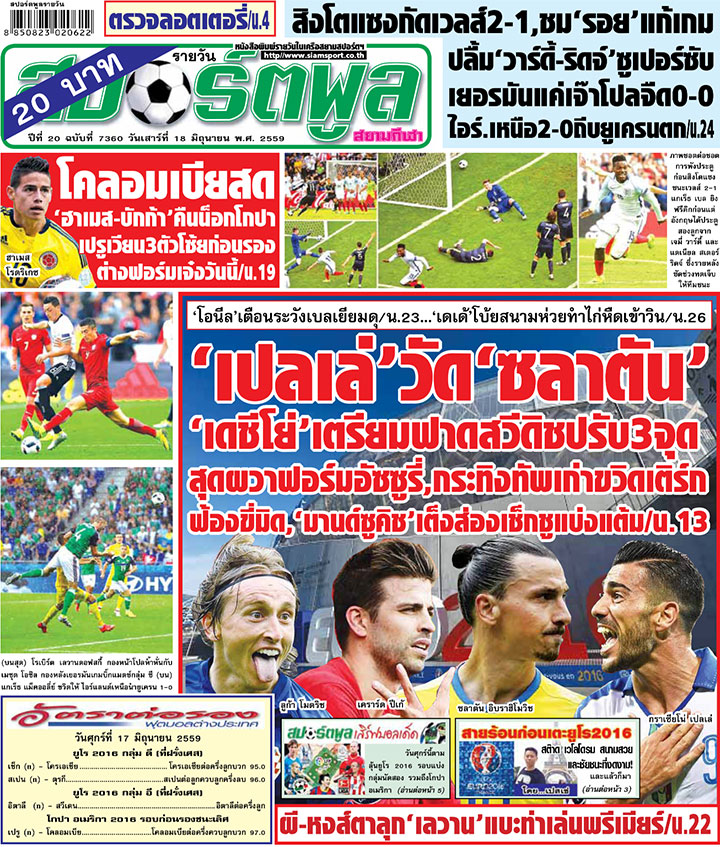 RE : สปอร์ตพูล ฉบับวันที่ 18 มิ.ย. 2559