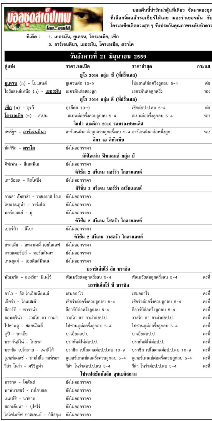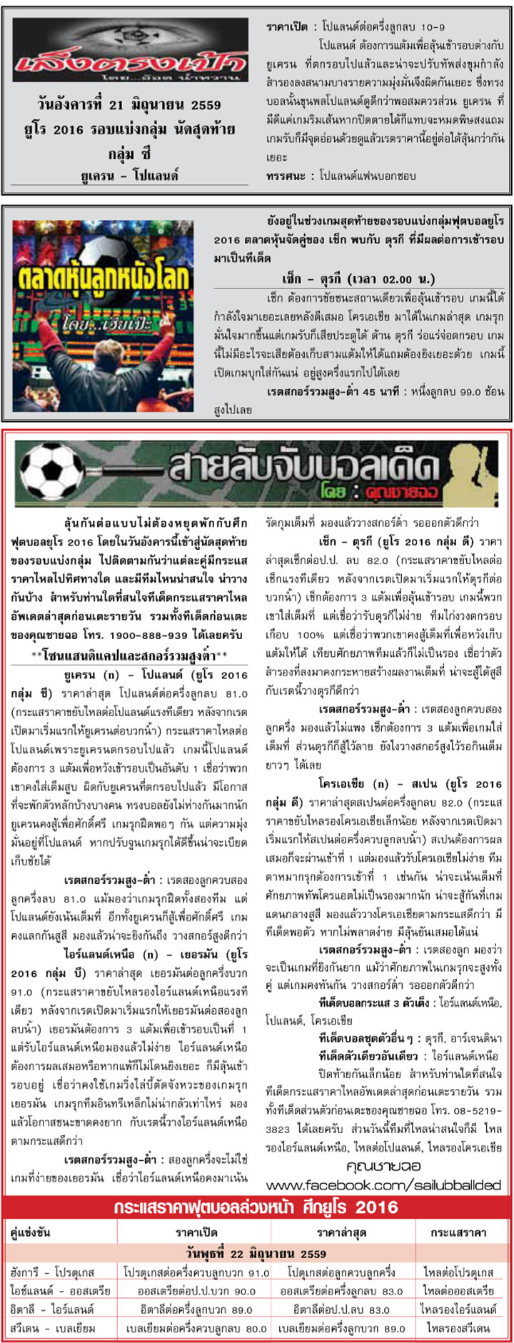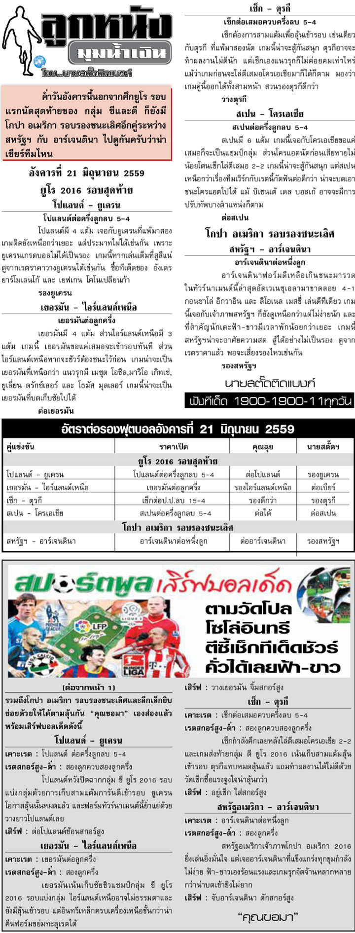 RE : สปอร์ตพูล ฉบับวันที่ 22 มิ.ย. 2559