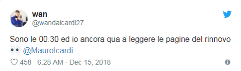 “ตอนนี้เวลา 00.30 น. และตอนนี้ ฉันกำลังอ่านรายละเอียดของสัญญาใหม่ของ เมาโร อีการ์ดี้” วานด้า โพสต์
