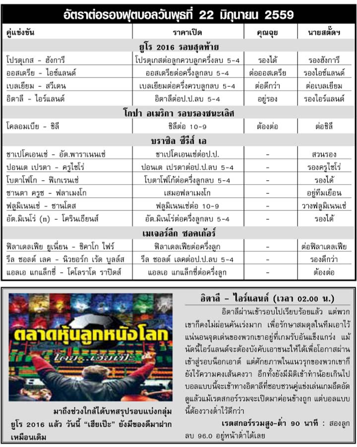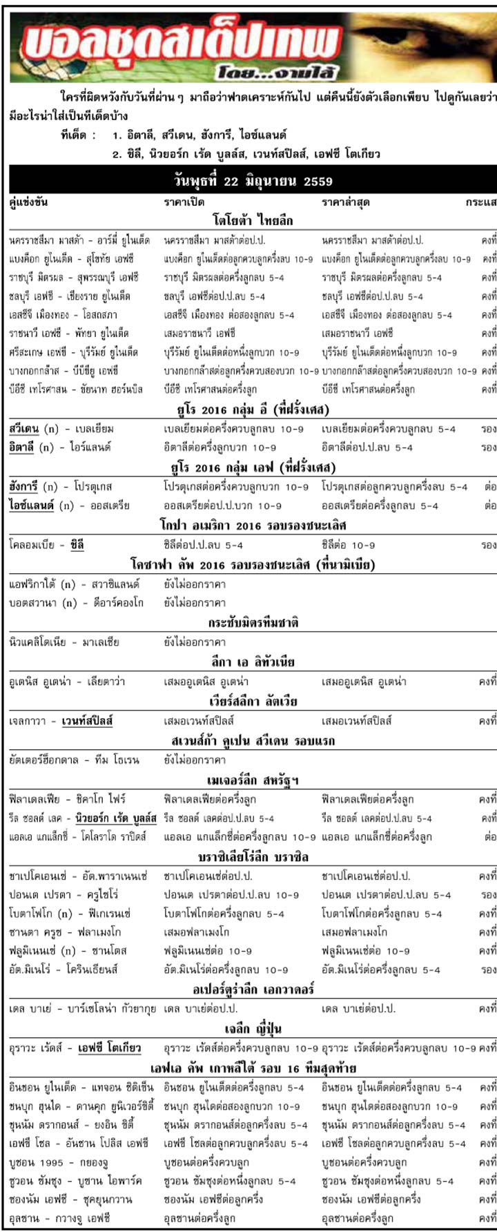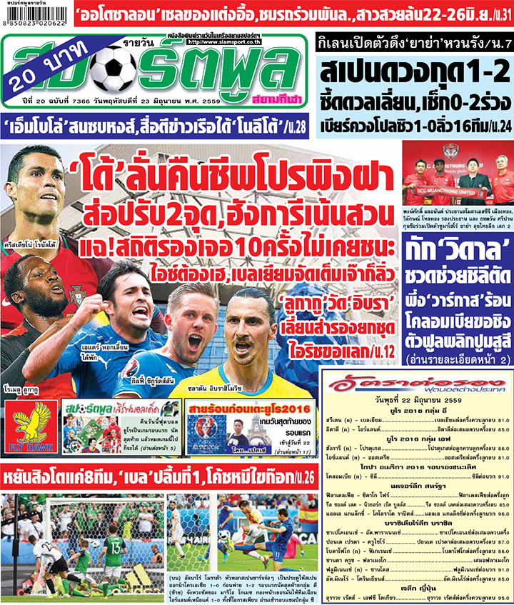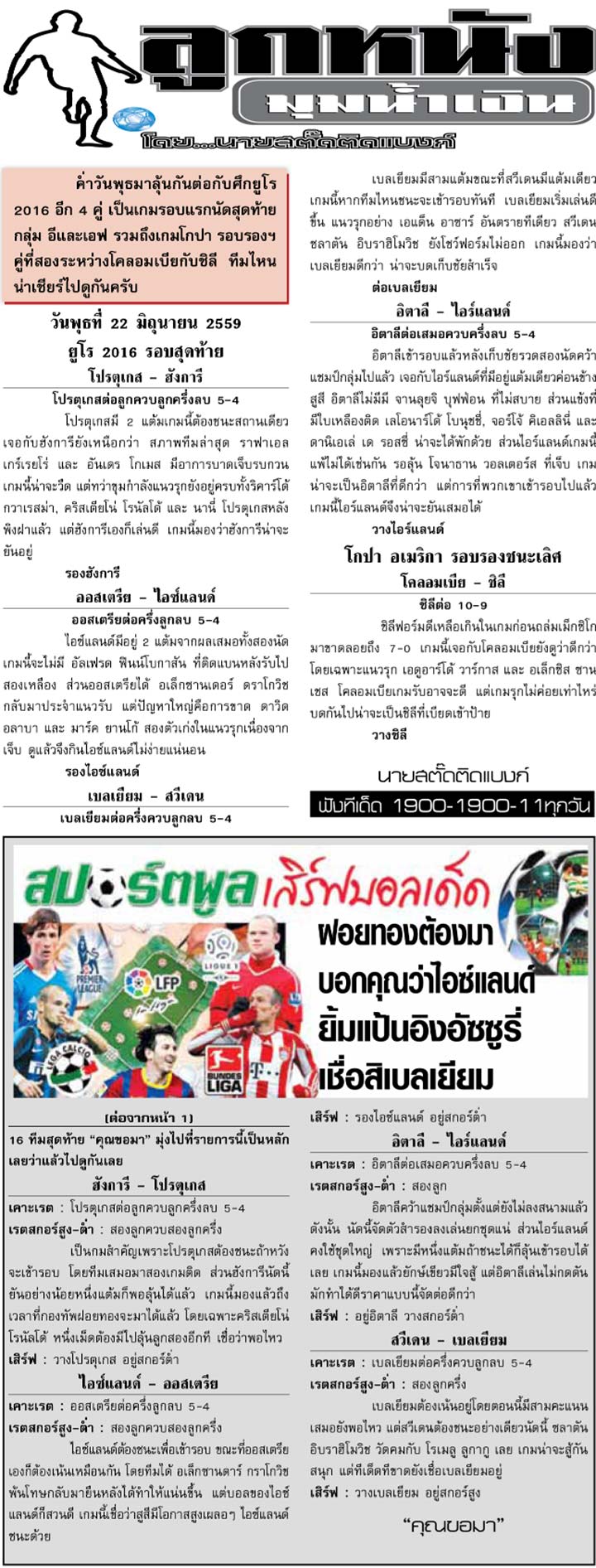 RE : สปอร์ตพูล ฉบับวันที่ 23 มิ.ย. 2559