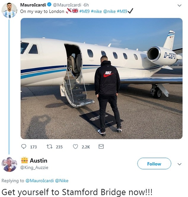 ล่าสุดชาวเน็ตหัวใจสิงห์ก็แตกตื่นเพราะ อีการ์ดี้ ทวีตรูปผ่านบัญชี @MauroIcardi ดอนจะขึ้นนักเหล็กว่า “กำลังเดินทางไปลอนดอน”