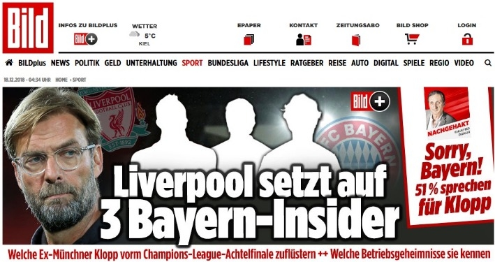 ข่าวฟุตบอล บิลด์ สปอร์ต สื่อดังจากเยอรมัน เขียนจดหมายเปิดผนึกสนับสนุน เจอร์เก้น คล็อปป์ และสโมสร ลิเวอร์พูล อย่างสุดลิ่มทิ่มประตู ให้หยุดความจองหองของ บาเยิร์น มิวนิค คู่แข่งในรอบ 16 ทีม ยูฟ่า ชปล.ให้จงได้