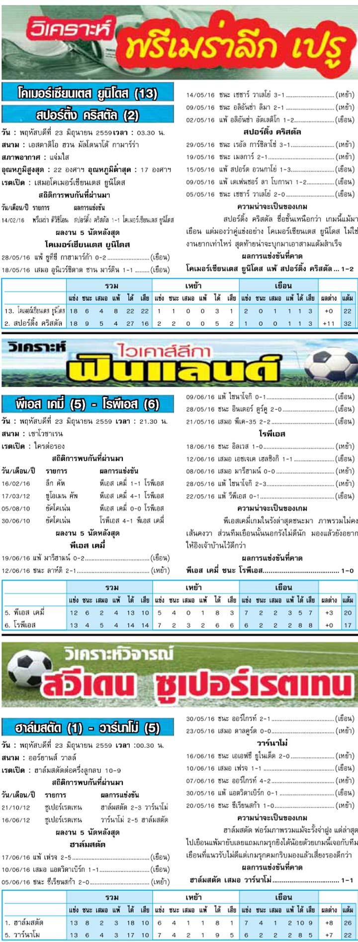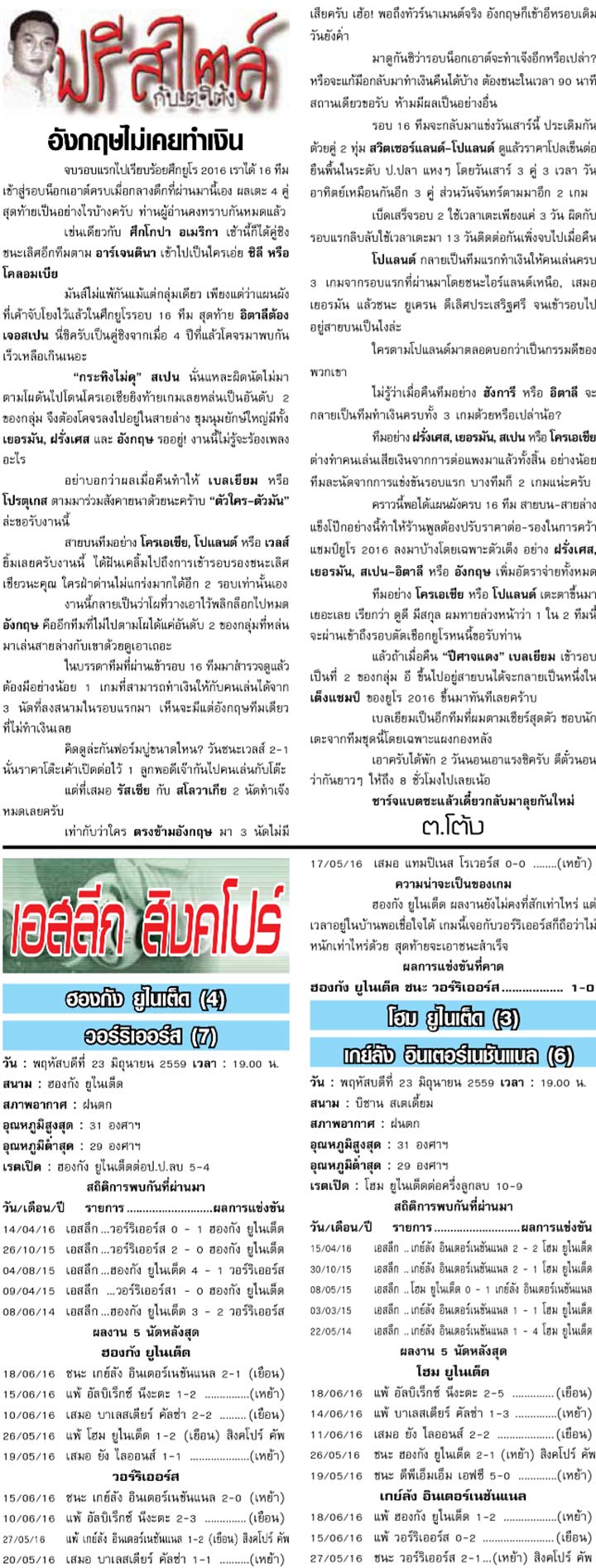RE : สปอร์ตพูล ฉบับวันที่ 24 มิ.ย. 2559