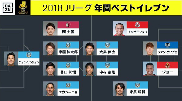 รายชื่อ 11 ผู้เล่นทีมยอดเยี่ยม เจลีก 2018