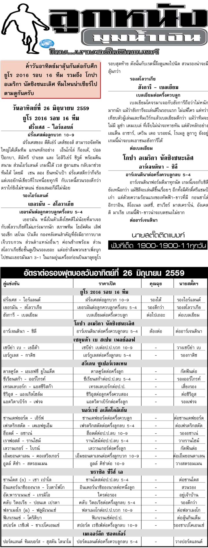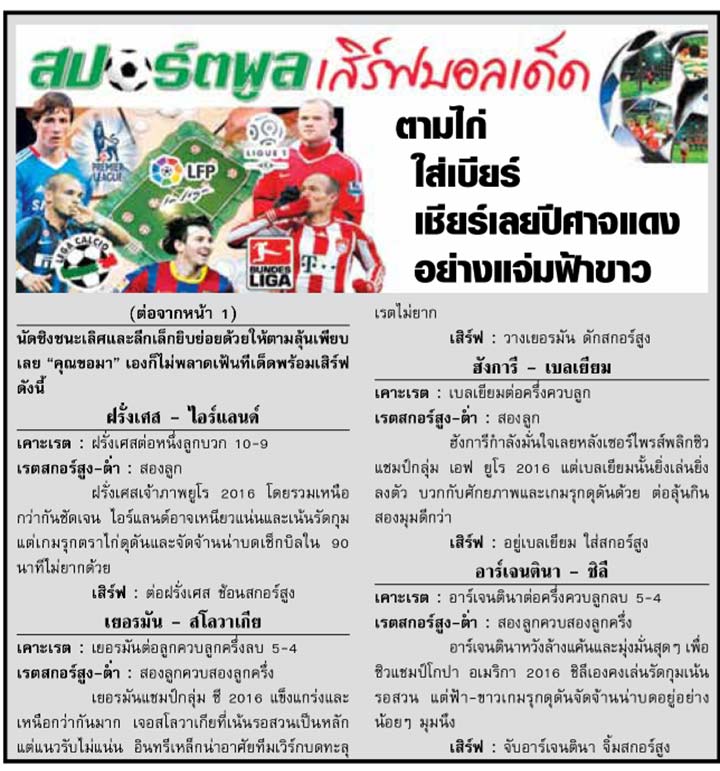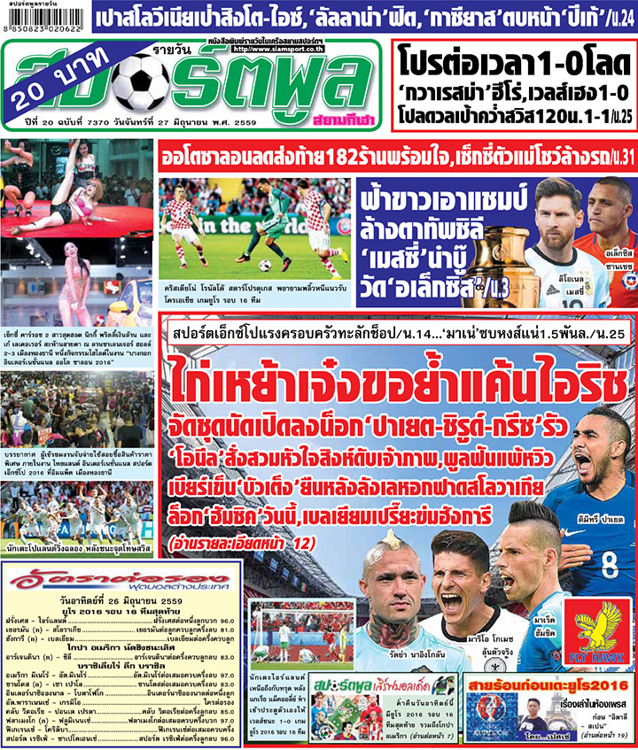 RE : สปอร์ตพูล ฉบับวันที่ 27 มิ.ย. 2559