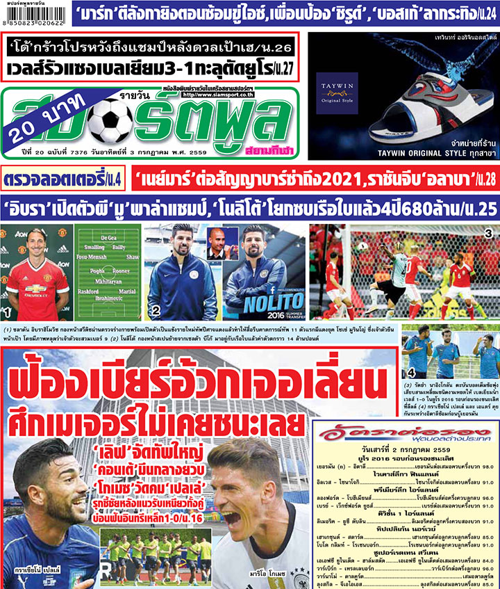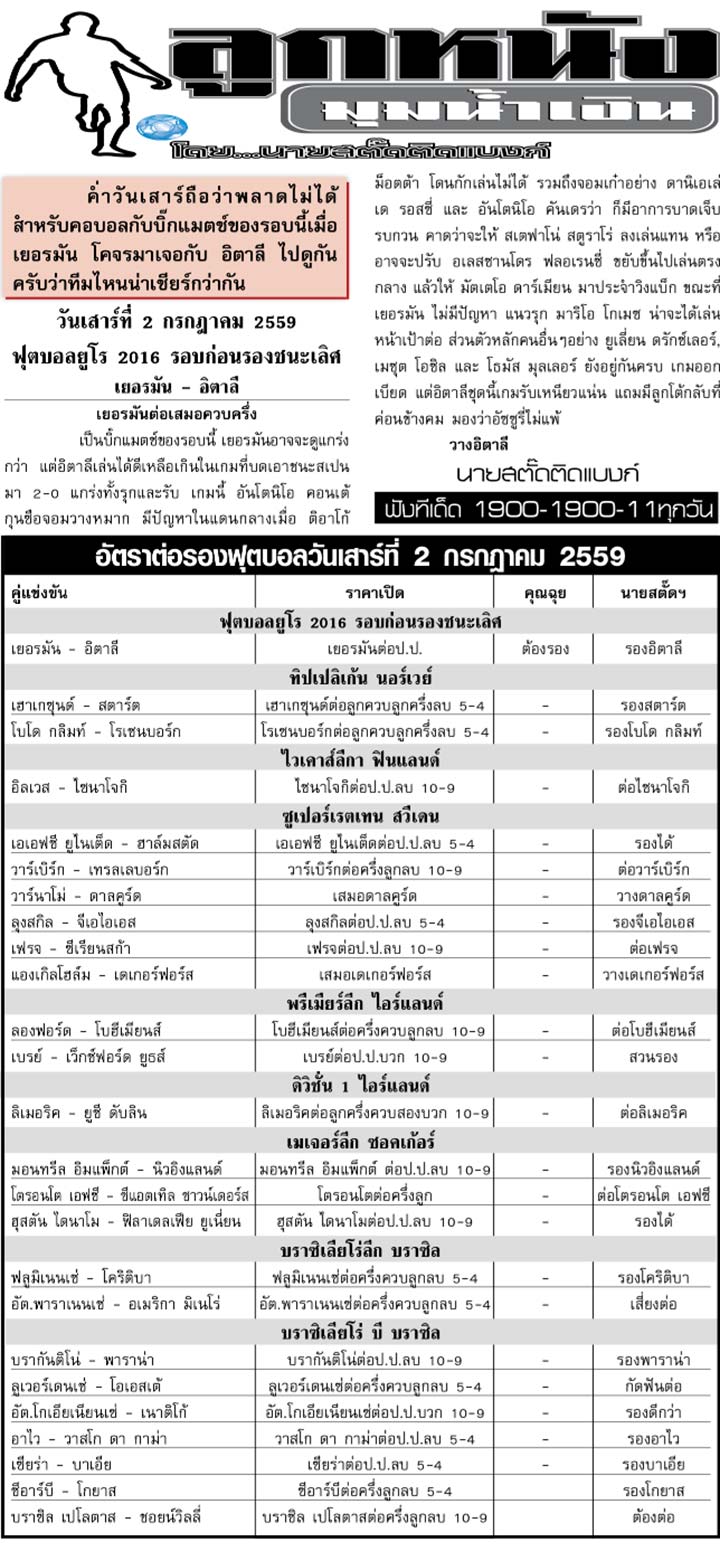 RE : สปอร์ตพูล ฉบับวันที่ 3 ก.ค. 2559