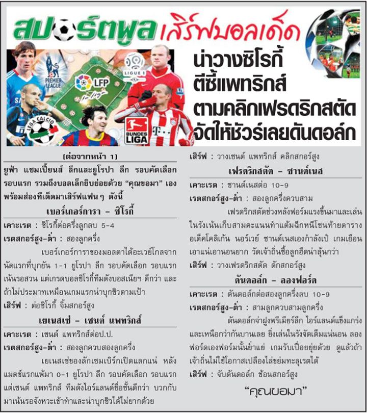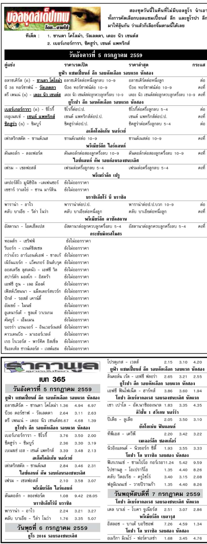RE : สปอร์ตพูล ฉบับวันที่ 6 ก.ค. 2559