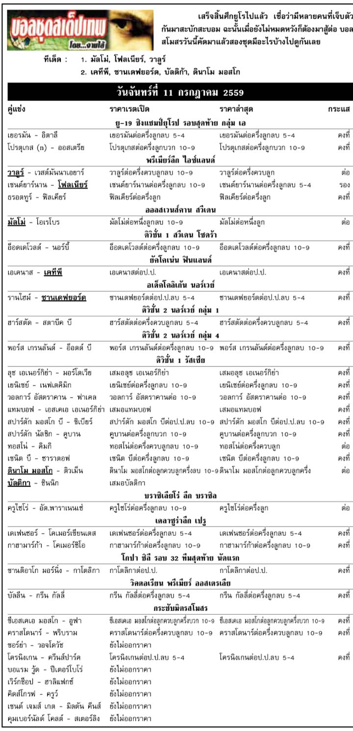 RE : สปอร์ตพูล ฉบับวันที่ 12 ก.ค. 2559