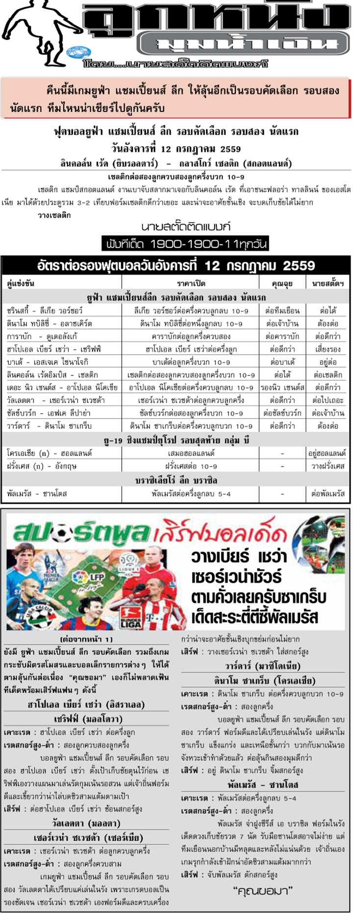 RE : สปอร์ตพูล ฉบับวันที่ 13 ก.ค. 2559