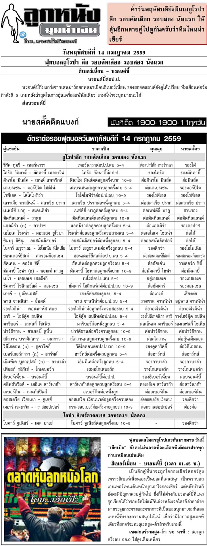 RE : สปอร์ตพูล ฉบับวันที่ 15 ก.ค. 2559