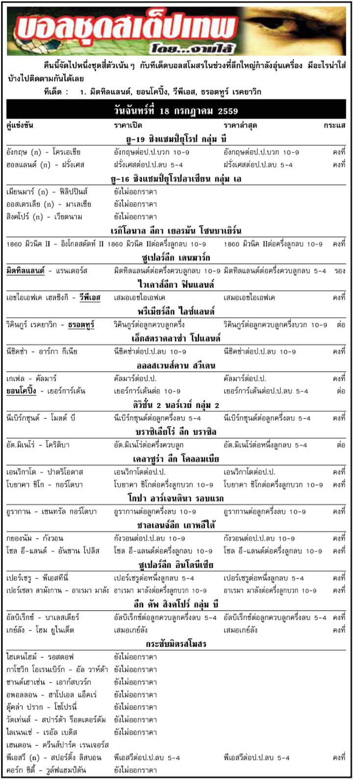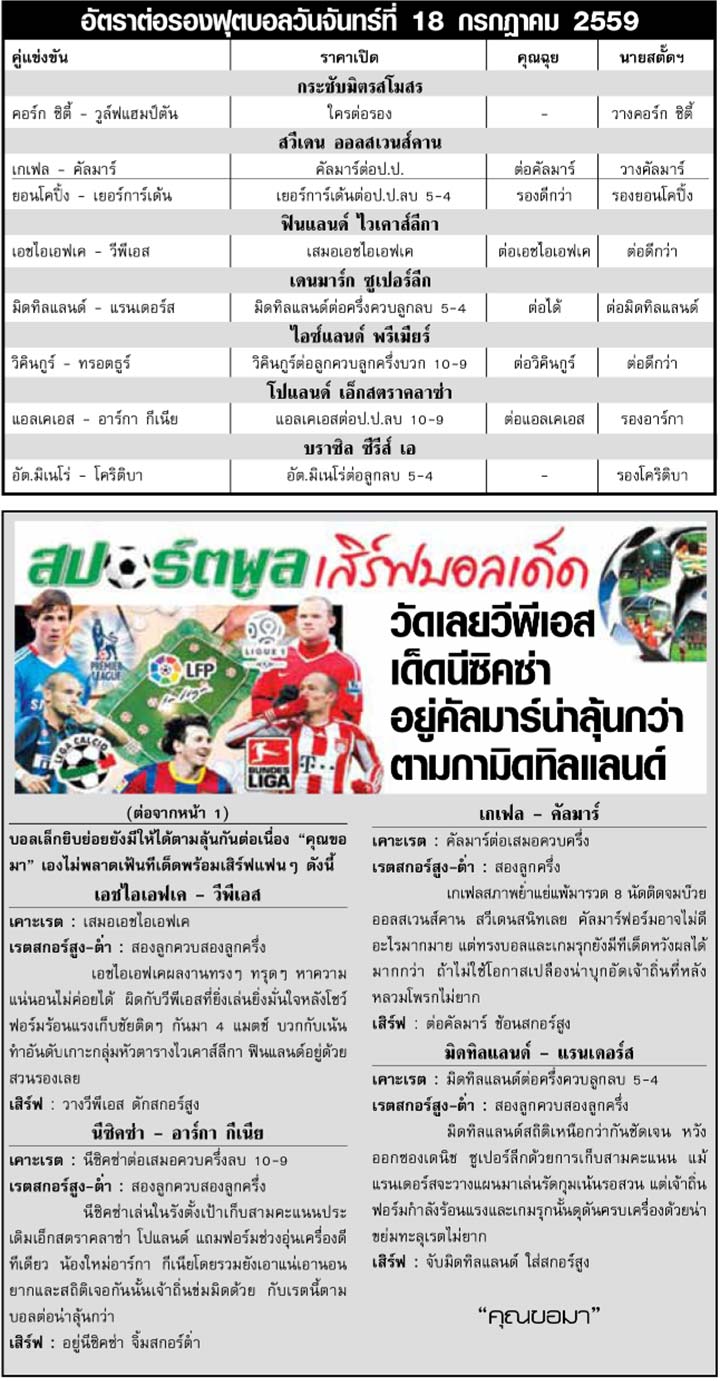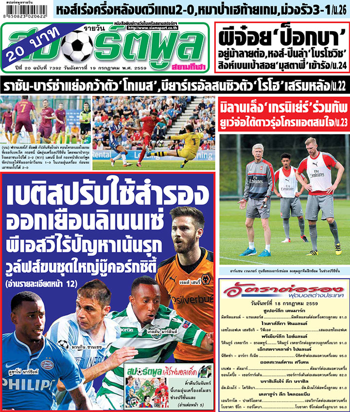 RE : สปอร์ตพูล ฉบับวันที่ 19 ก.ค. 2559