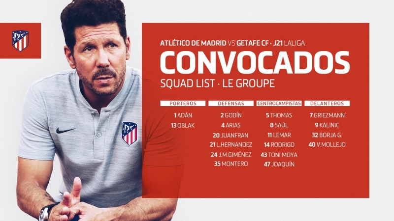อย่างไรก็ตาม กลุ่มแข้งเดี้ยงอีกหลายคนยังพลาดช่วยทีมต่อไปไม่ว่าจะเป็น โกเก้, มาชิน บีโตโล่, สเตฟาน ซาวิช, ดีเอโก้ คอสต้า และ ฟิลิเป้ ลุยส์ ขณะที่ อังเคล กอร์เรอา ติดโทษแบน