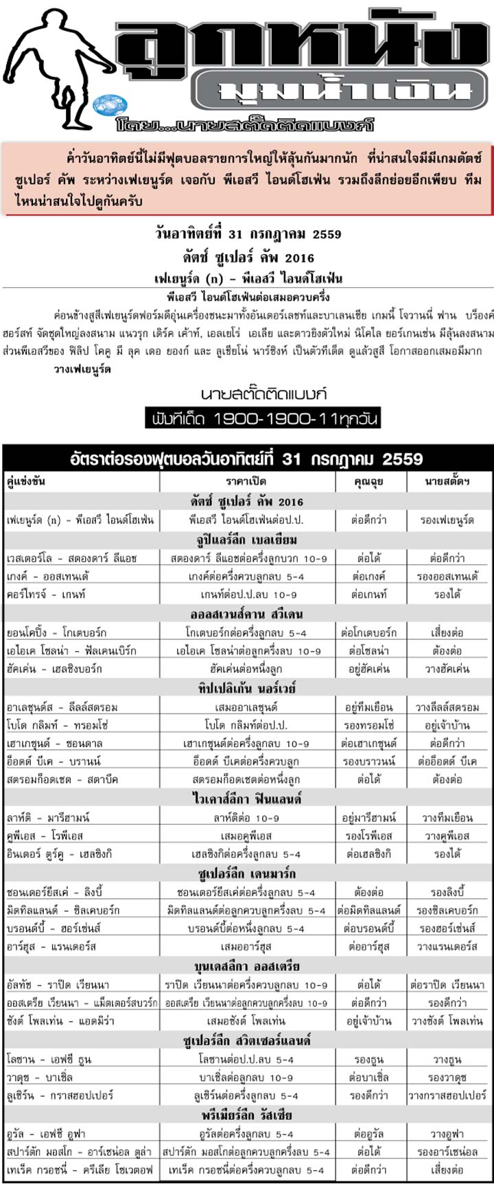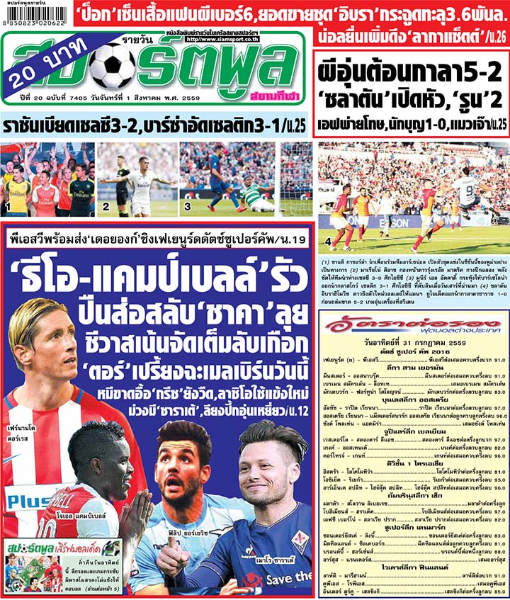 RE : สปอร์ตพูล ฉบับวันที่ 1 ส.ค. 2559
