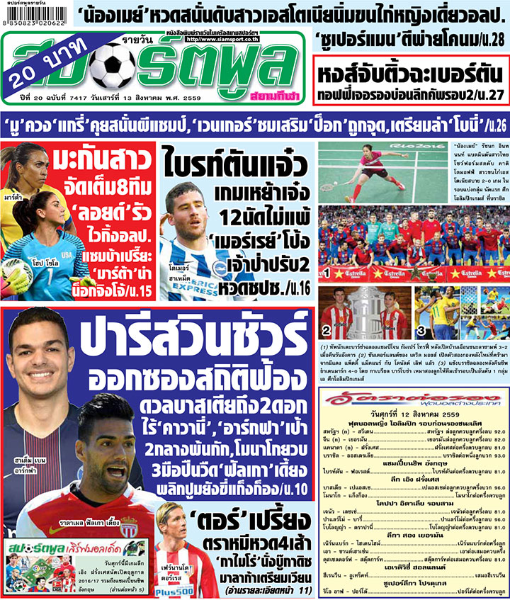 RE : นสพ. สปอร์ตพูล ฉบับวันที่ 13 ส.ค. 2559