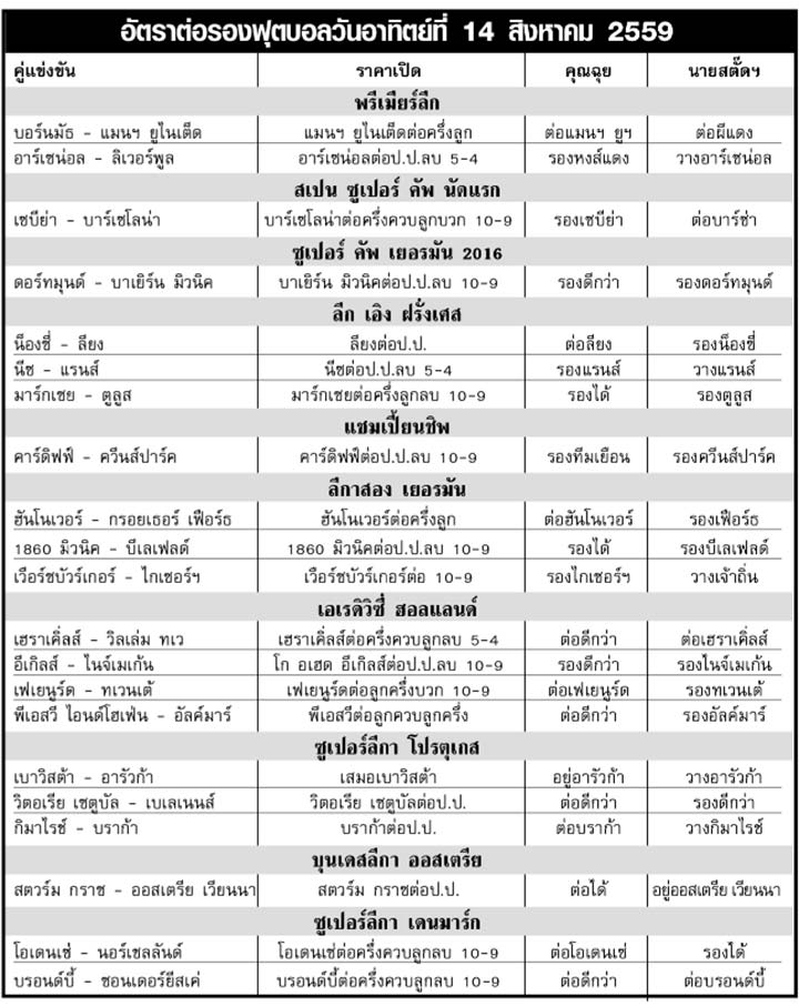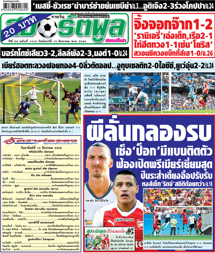 RE : สปอร์ตพูล ฉบับวันที่ 15 ส.ค. 2559