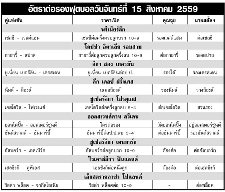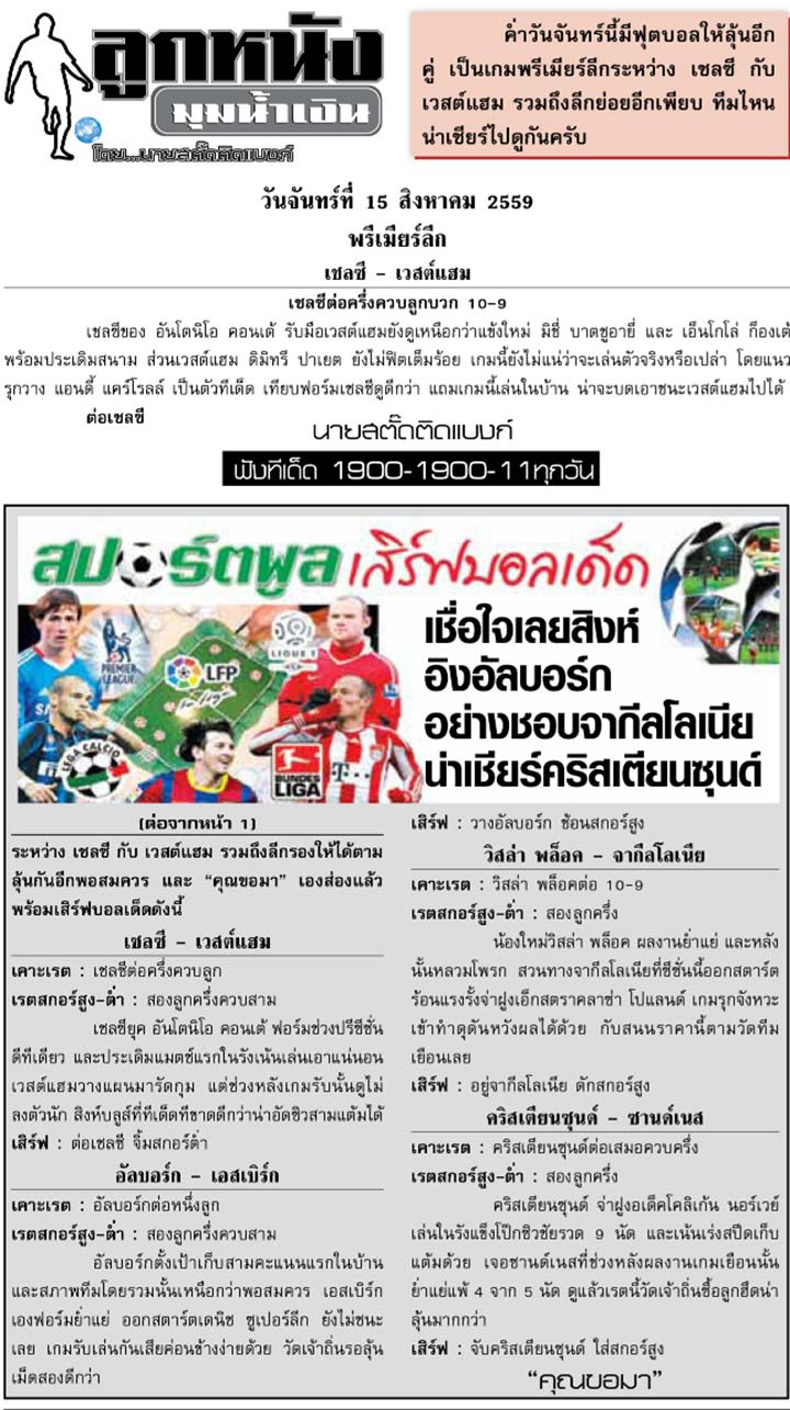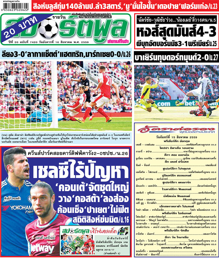 RE : สปอร์ตพูล ฉบับวันที่ 16 ส.ค. 2559