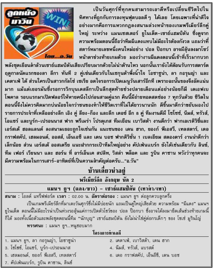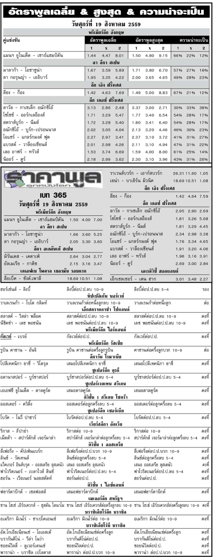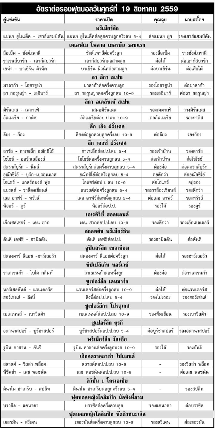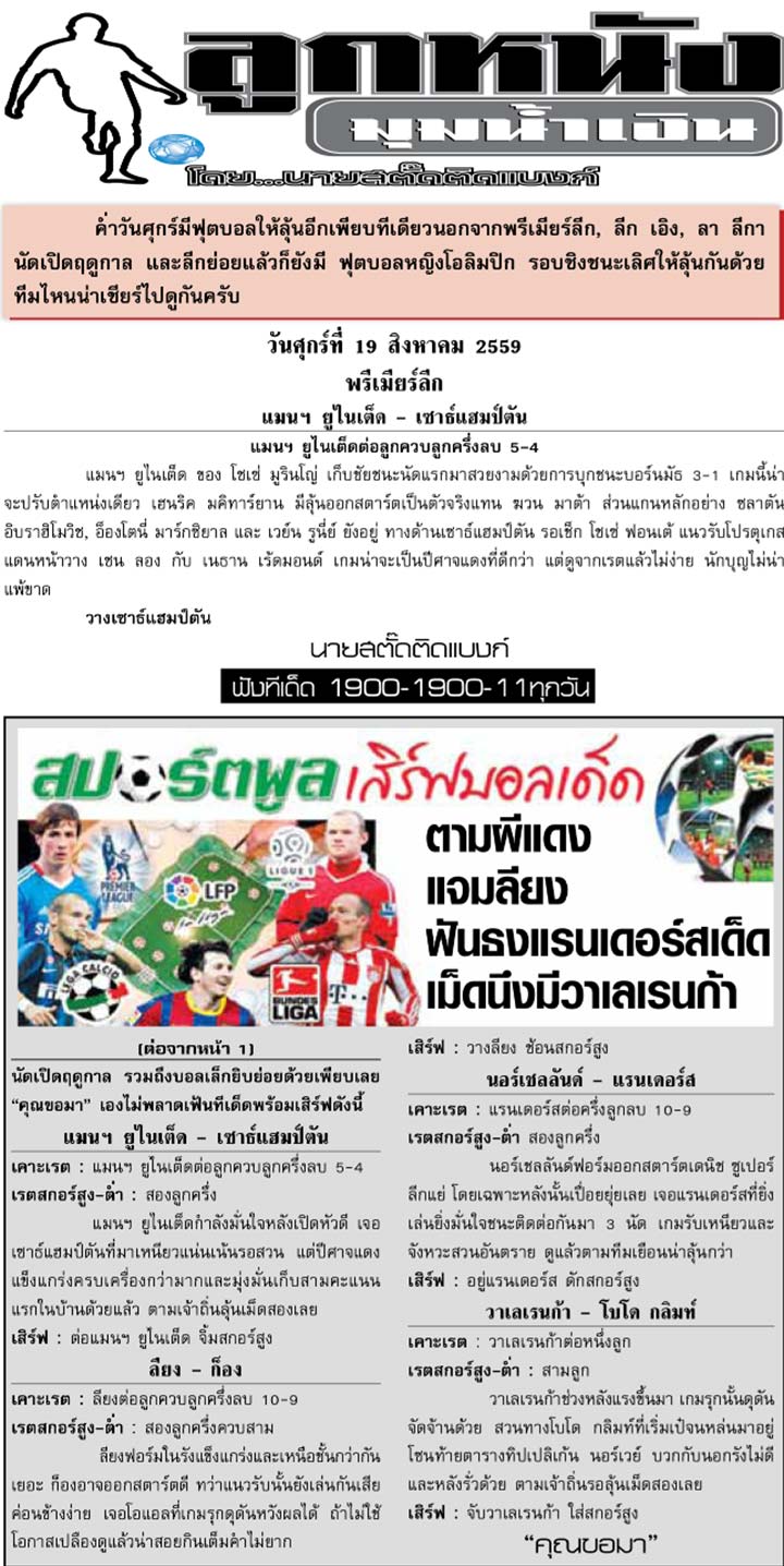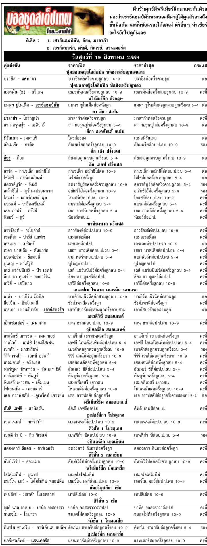 RE : สปอร์ตพูล ฉบับวันที่ 20 ส.ค. 2559