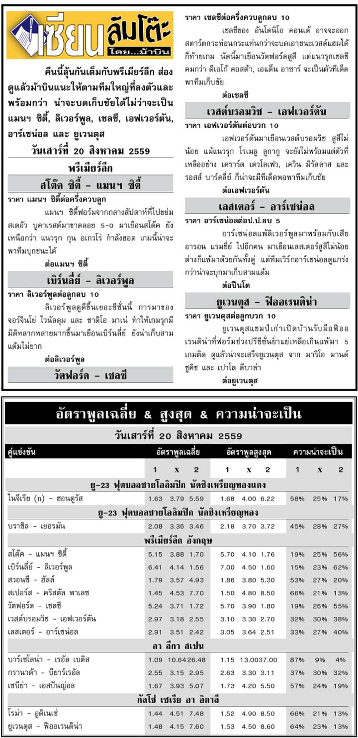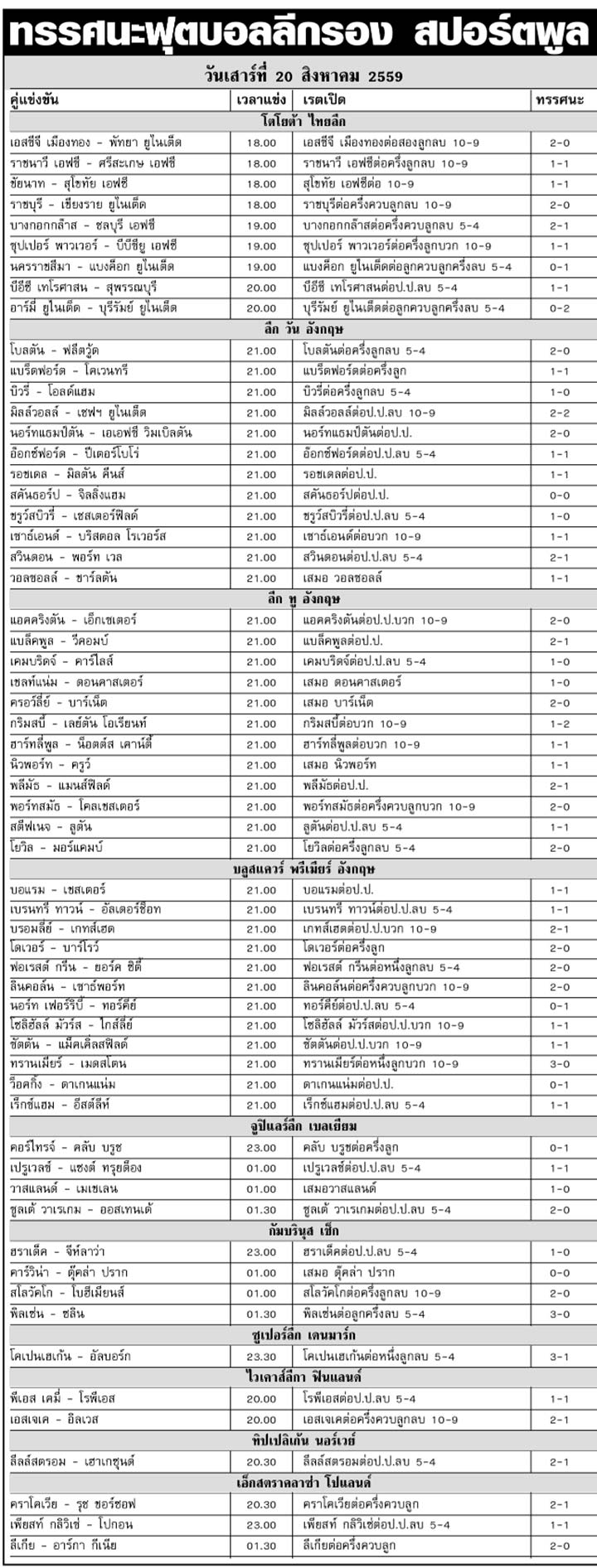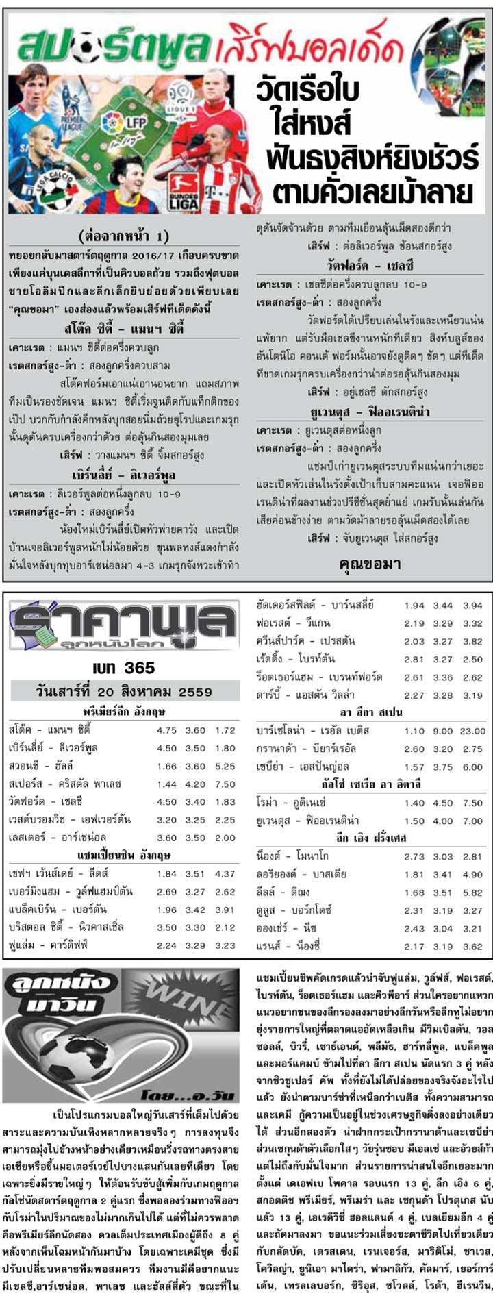 RE : สปอร์ตพูล ฉบับวันที่ 21 ส.ค. 2559