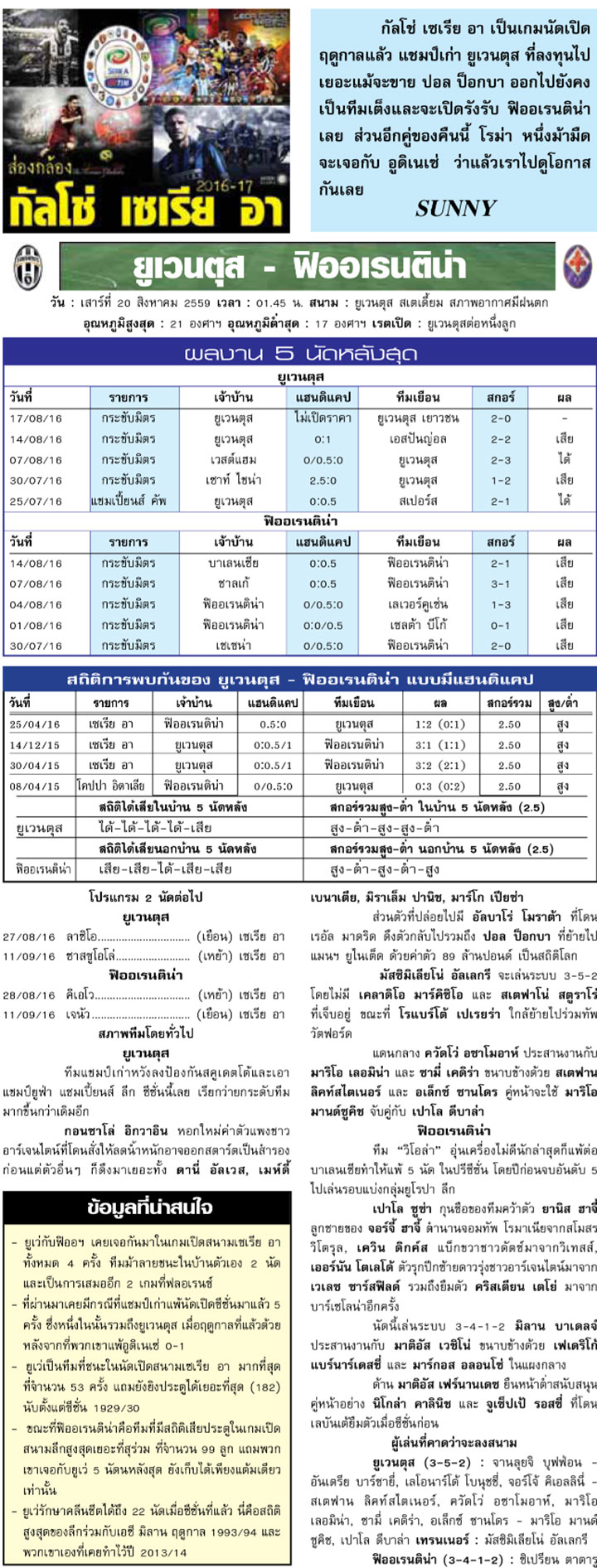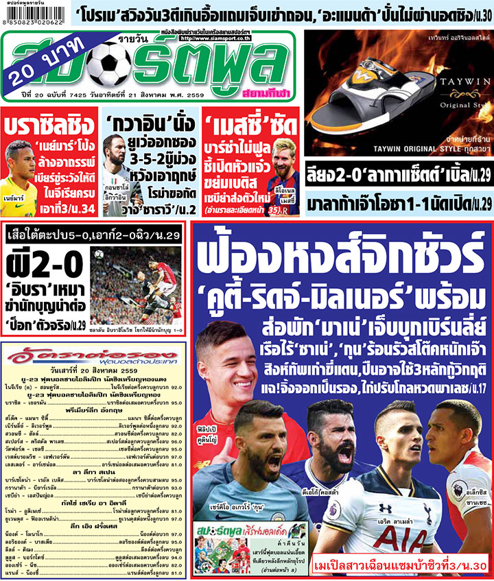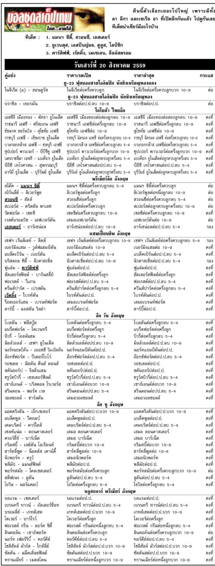 RE : สปอร์ตพูล ฉบับวันที่ 21 ส.ค. 2559