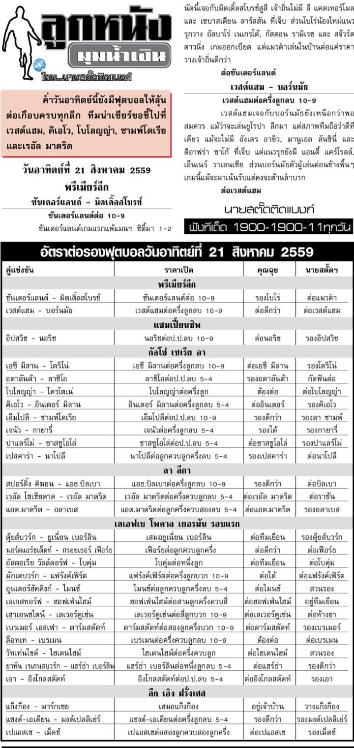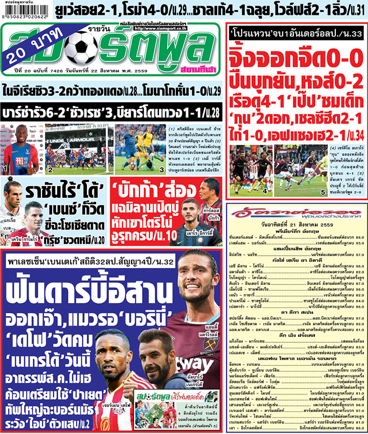 RE : สปอร์ตพูล ฉบับวันที่ 22 ส.ค. 2559