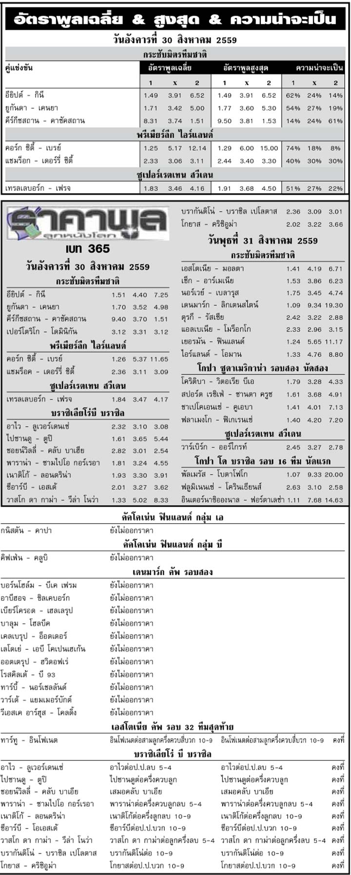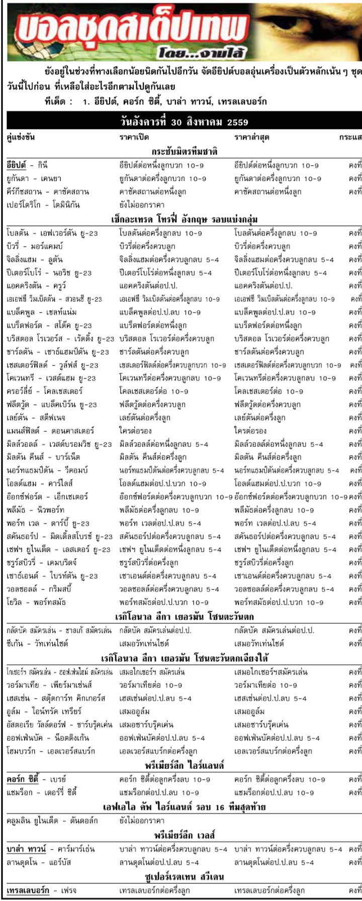 RE : สปอร์ตพูล ฉบับวันที่ 31 ส.ค. 2559