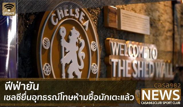 สหพันธ์ฟุตบอลนานาชาติ (ฟีฟ่า) ประกาศยืนยันเมื่อวันอังคารที่ 5 มีนาคม ที่ผ่านมาว่า เชลซี สโมสรดังในศึก พรีเมียร์ลีก อังกฤษ ได้ยื่นเรื่องอุทธรณ์เข้ามาอย่างเป็นทางการแล้ว จากกรณีที่โดนสั่งห้ามทำการซื้อนักเตะในช่วงเปิดตลาด 2 รอบต่อไป (ซัมเมอร์นี้และเดือนมกราคมปีหน้า) เพราะทำผิดกฎในเรื่องซื้อนักเตะมาร่วมทีมตอนอายุยังไม่ถึงเกณฑ์