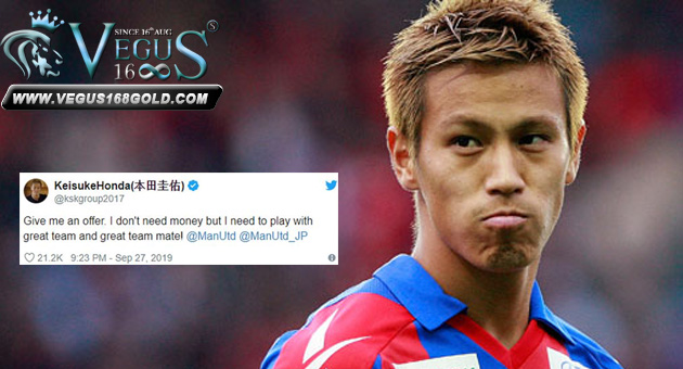 เปิดข้อความ ฮอนดะ @ManUtd @ManUtd_JP กล่าวผ่าน ทวิตเตอร์ โพสต์ระบายความในใจไปยังแมนฯ ยูไนเต็ด ว่าในตอนนี้ตนนั้น พร้อมไปเล่นให้ทีม ระบุว่าเงินไม่สำคัญในปัจจุบัน ฮอนดะ ยังว่างไม่ได้เซ็นสัญญากับสโมสรใดเลย หลังจากตัดสินใจแยกทางกับ เมลเบิร์น วิคตอรี่ เมื่อฤดูกาล ที่แล้ว2018-19 ตอนนี้ มีตำแหน่งเป็นผู้จัดการทั่วไปของทีมชาติกัมพูชาจริงผมไม่ได้ต้องการเงินเลย แต่ผมอยากเล่นร่วมกับทีมที่ยอดเยี่ยม
