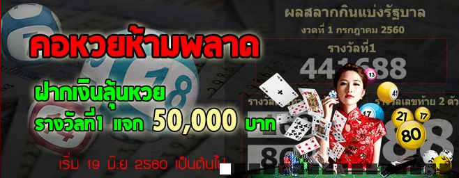 เพียงแค่สมาชิกฝากเงินเข้ามาขั้นต่ำ 500 ฿ ก็มีสิทธื์ลุ้นหวยฟรี รางวัลที่ 1 แจกสูงสุด 50,000 ฿ ต่อบิล