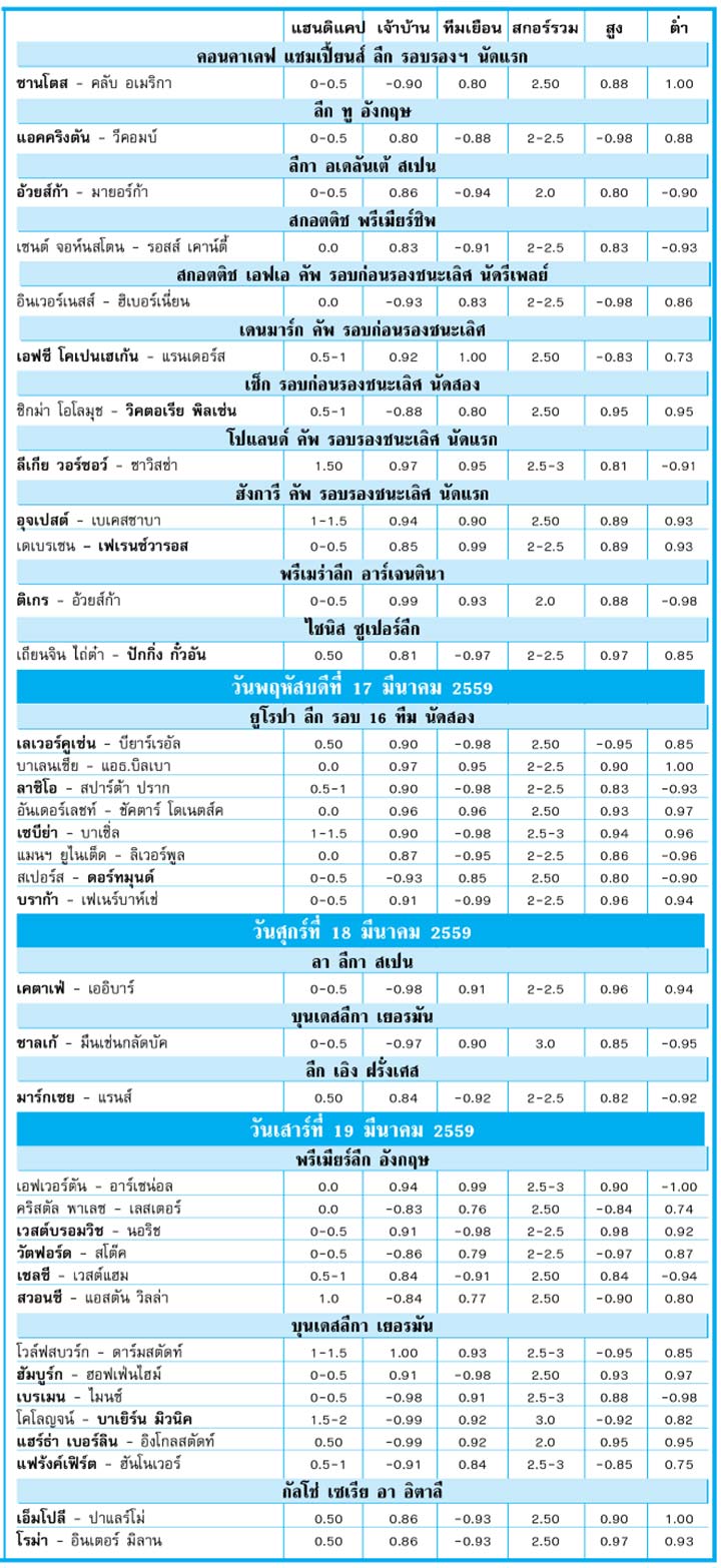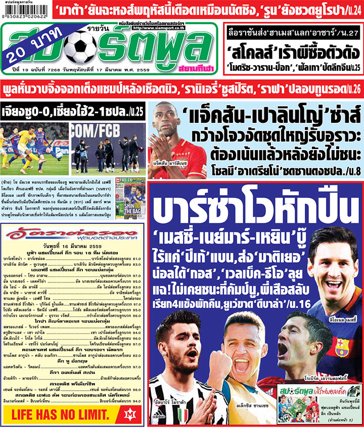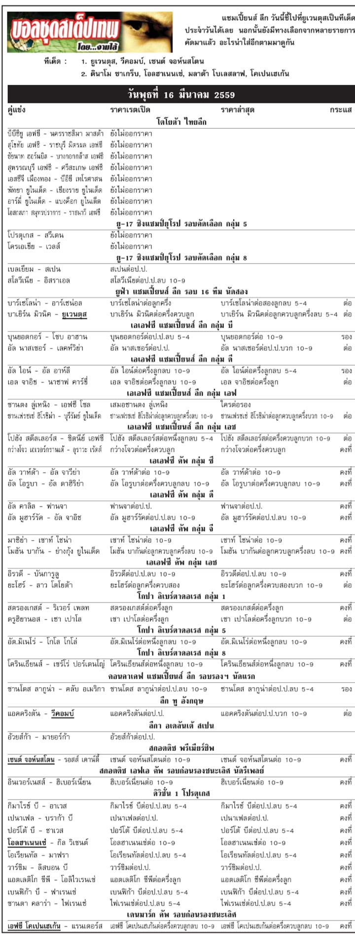 RE : หนังสือพิมพ์สปอร์ตพูลวันนี้ 16-03-2559