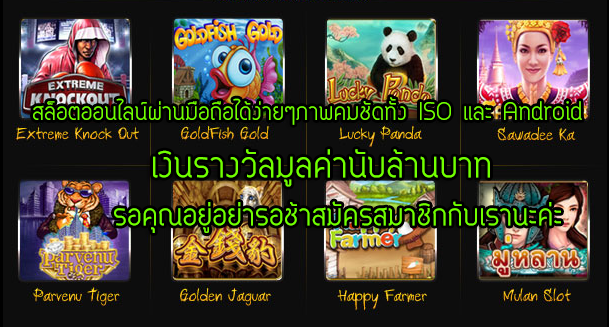 เล่นกันง่ายๆได้แล้ววันนี้เล่นสล็อตออนไลน์ผ่านมือถือได้ง่ายๆภาพคมชัดทั้ง ISO และ Android เล่นได้ทั้งเกมคาสิโน สล๊อตโซน MG,BBIN,JDB กีฬา SABA บนมือถือของคุณเอง เงินรางวัลมูลค่านับล้านบาท รอคุณอยู่อย่ารอช้าสมัครสมาชิกกับเรานะค่ะ่