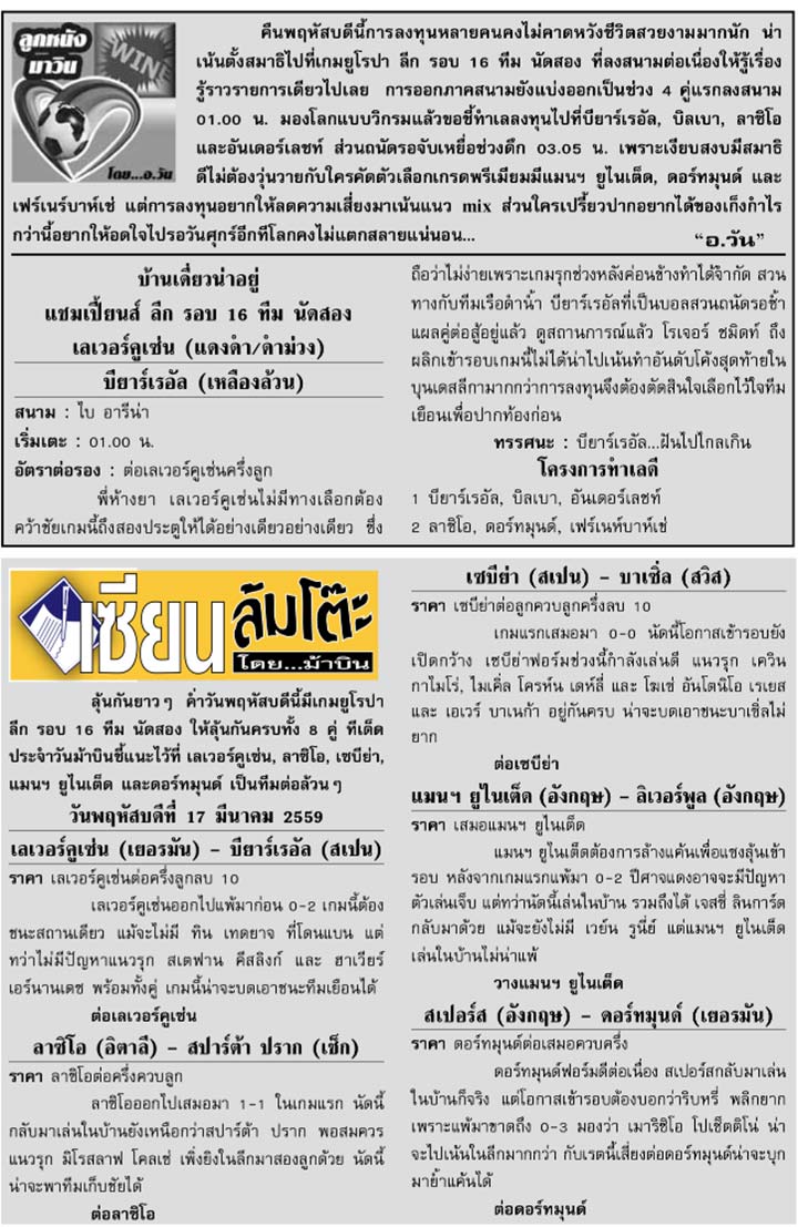 RE : หนังสือพิมพ์สปอร์ตพูลวันนี้ 17 มี.ค. 2559