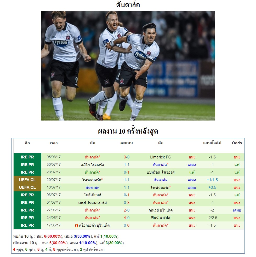 กัลเวย์ ยูไนเต็ด ทีมอันดับ 10 จะเปิดบ้านพบกับ ดันดาล์ค ทีมอันดับ 2 ผลงานของเจ้าบ้านในช่วงนี้ก็พอใช้ได้ 5 นัดหลังชนะ 3 เสมอ 1 แพ้ 1 เกมในบ้านนั้นก็พอใช้ได้ ส่วนดันดาล์ค ผลงานช่วงนี้ยังไม่ค่อยดีเท่าไหร่ 5 นัดหลังชนะ 1 เสมอ 3 แพ้ 1 แต่เกมเยือนนั้นยังทำได้ดี จากสถิติที่เคยพบกันมานั้นเป็นทีมเยือนที่ทำได้ดีกว่า เรทราคาเปิดมาให้ทีมเยือนต่อหนึ่งลูก คิดว่าเกมนี้น่าจัดเจ้าบ้านไปดีกว่าครับ