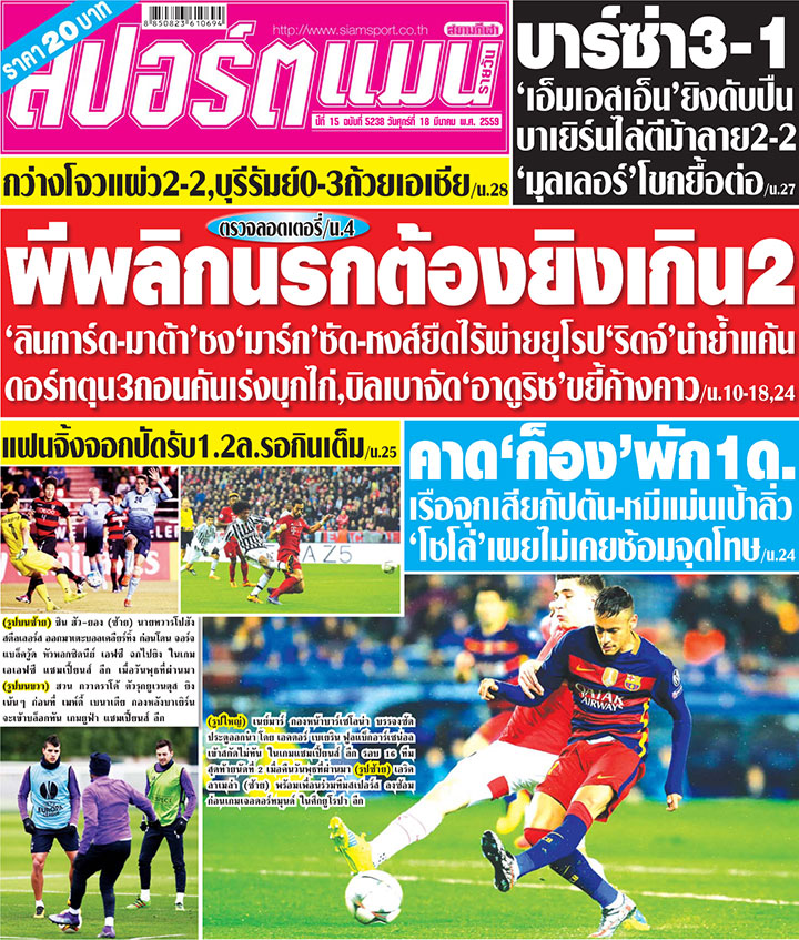 RE : หนังสือพิมพ์สปอร์ตแมน ฉบับวันที่ 17 มี.ค. 2559