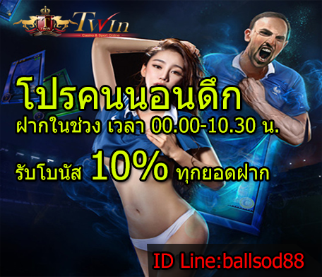 ***คนนอนดึก ฝากในช่วง เวลา 00.00-10.30 น. รับโบนัส 10% ทุกยอดฝาก