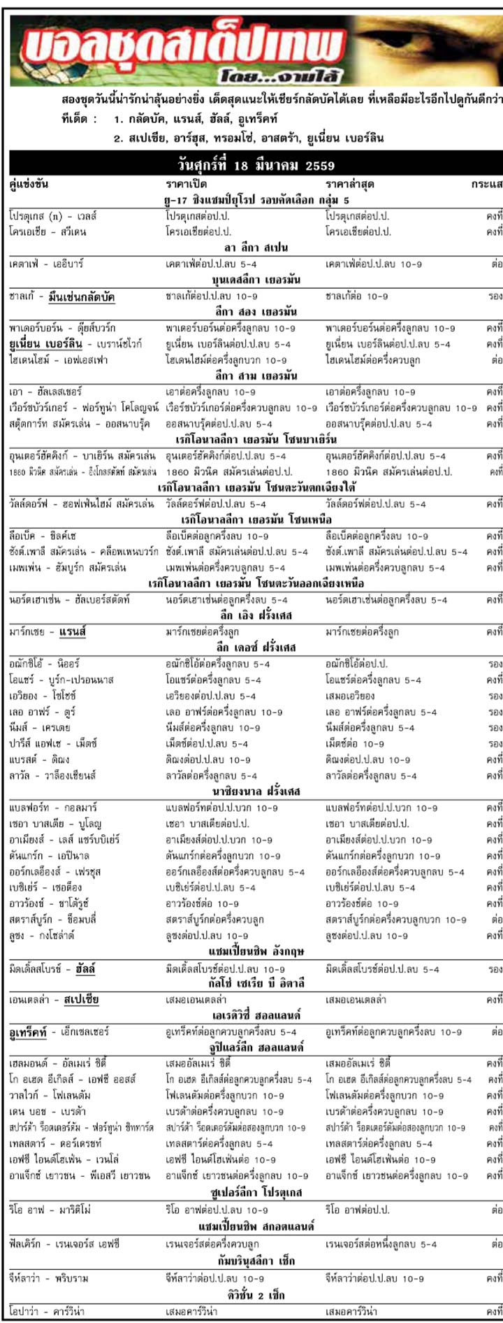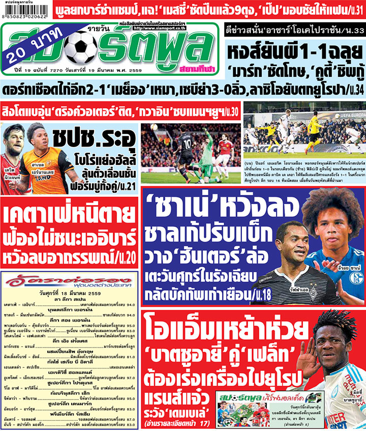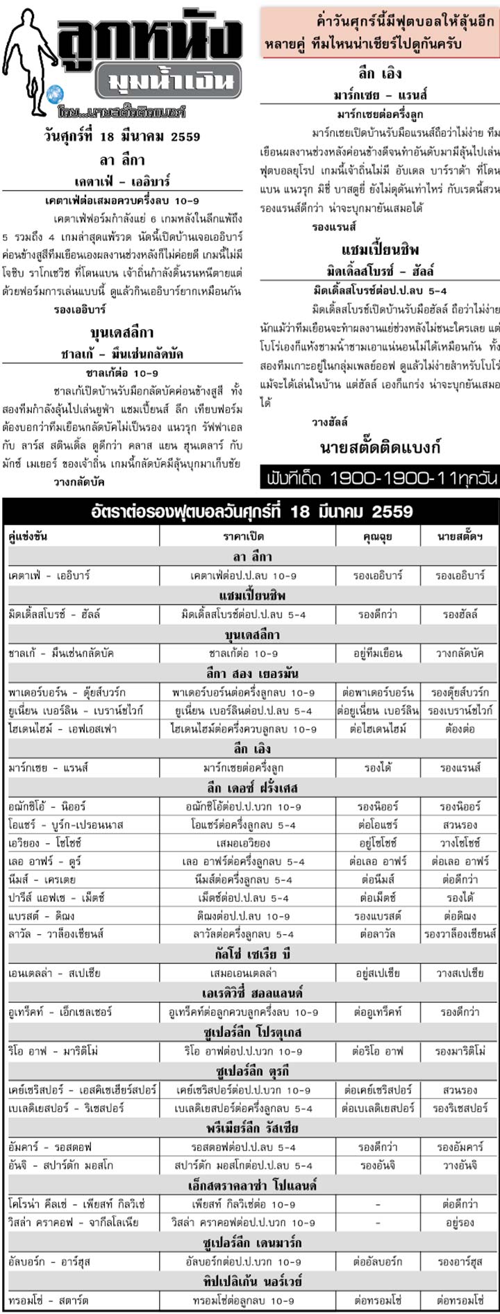 RE : สปอร์ตพูล ฉบับวันที่ 18 มี.ค. 2559