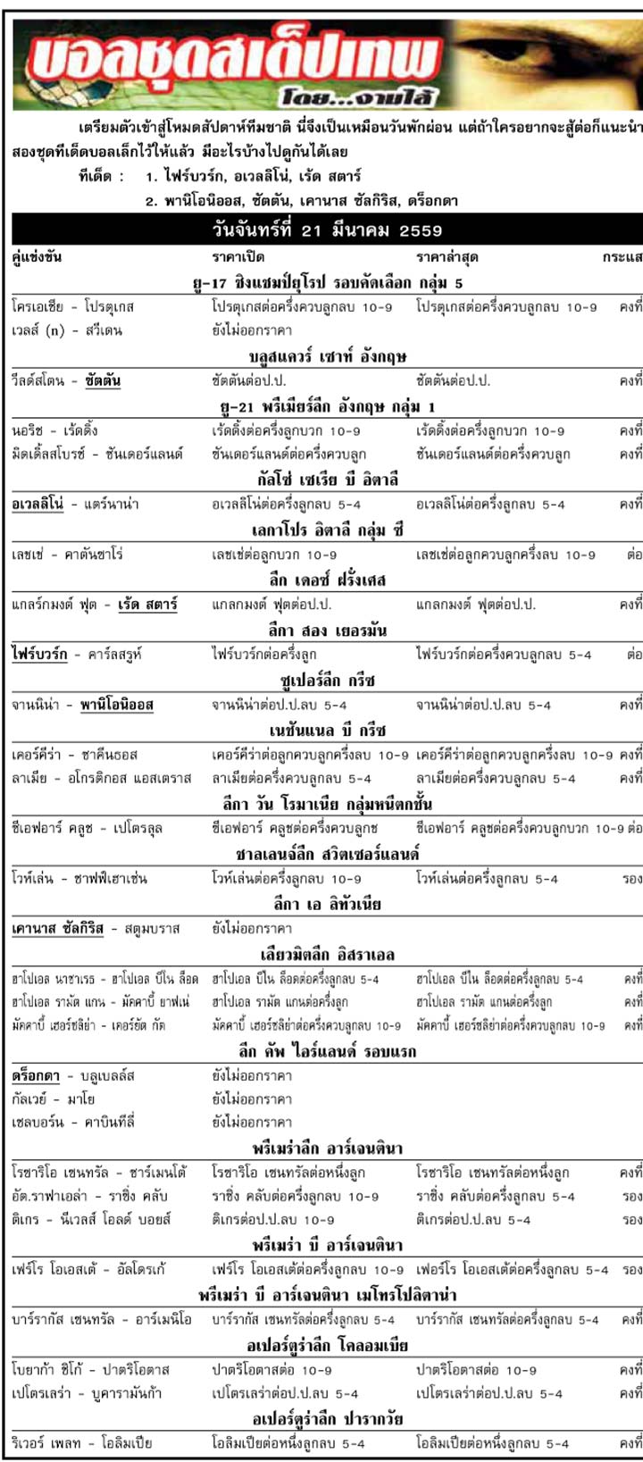 RE : สปอร์ตพูล ฉบับวันที่ 21 มี.ค. 2559