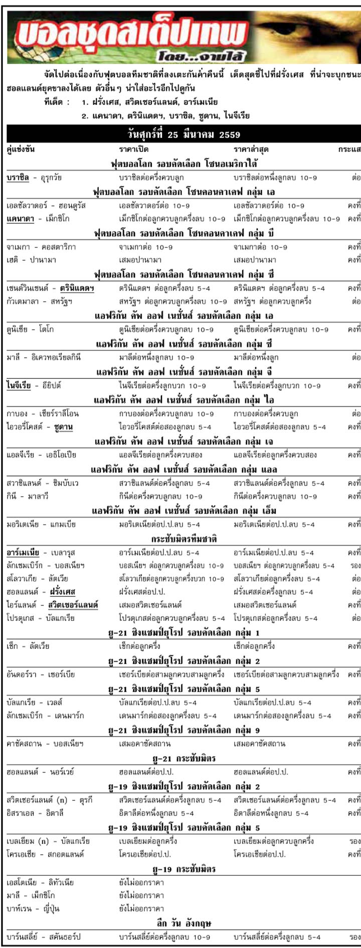 RE : สปอร์ตพูล ฉบับวันที่ 25 มี.ค. 2559