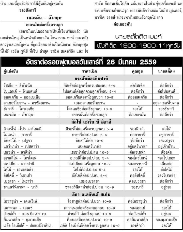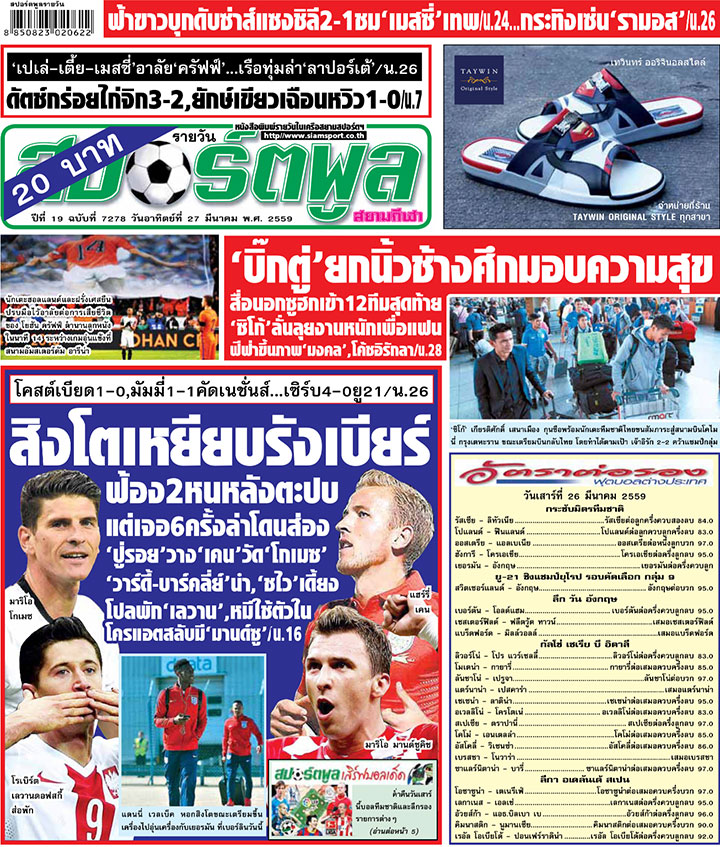RE : สปอร์ตพูล ฉบับวันที่ 26 มี.ค. 2559