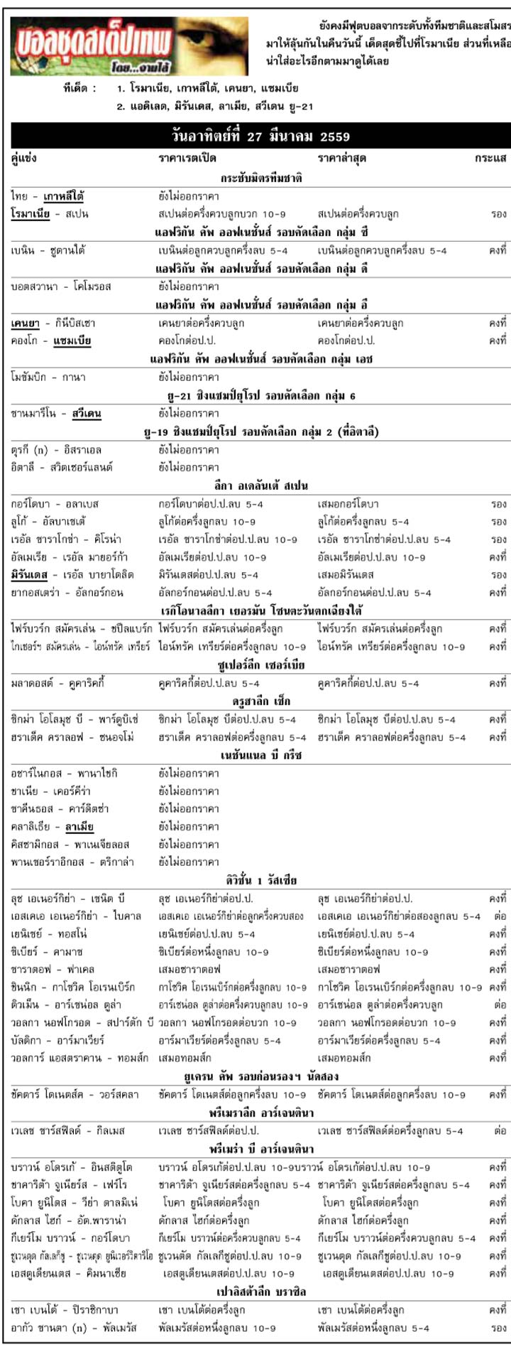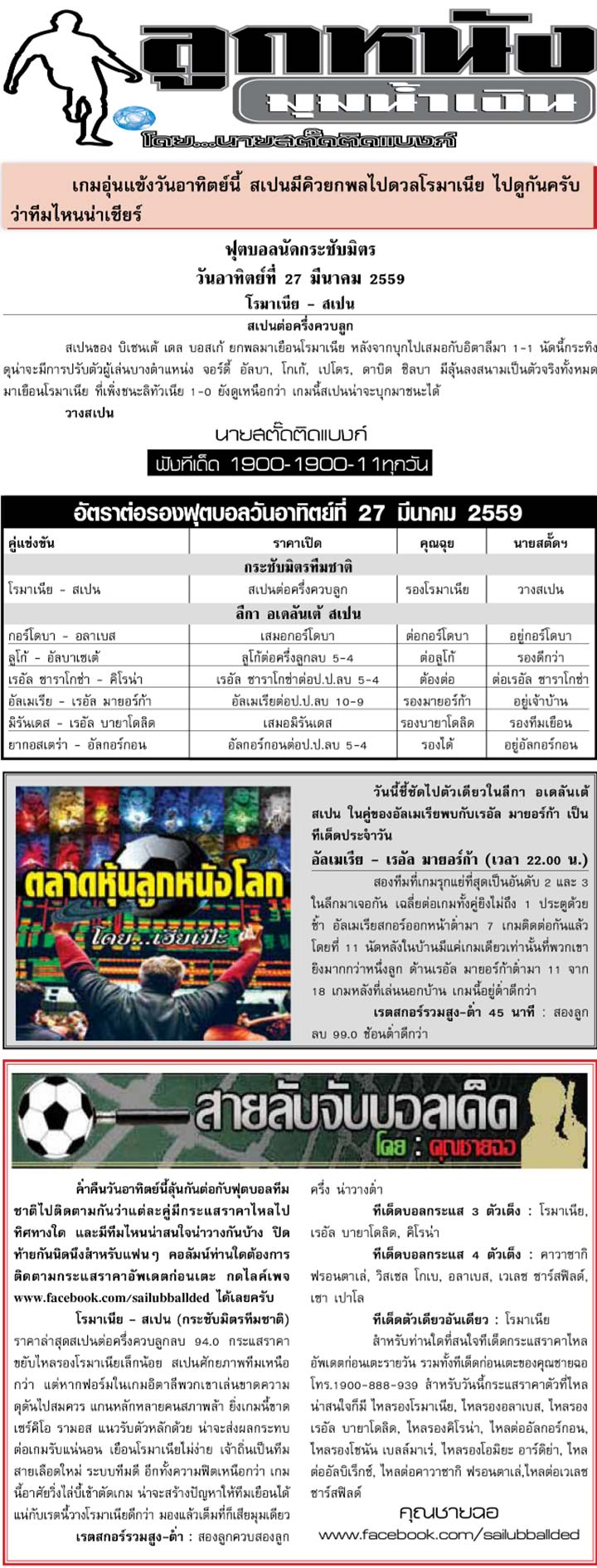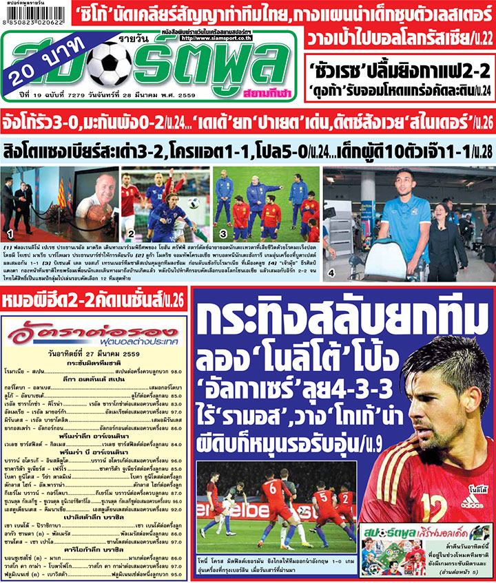 RE : สปอร์ตพูล ฉบับวันที่ 27 มี.ค. 2559