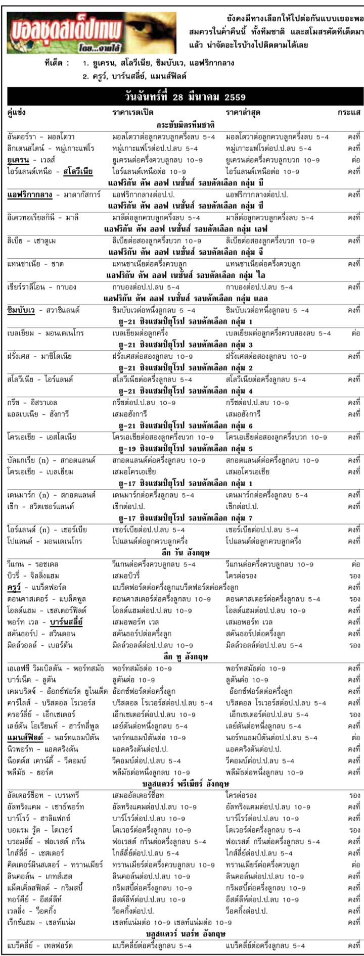 RE : สปอร์ตพูล ฉบับวันที่ 28 มี.ค. 2559